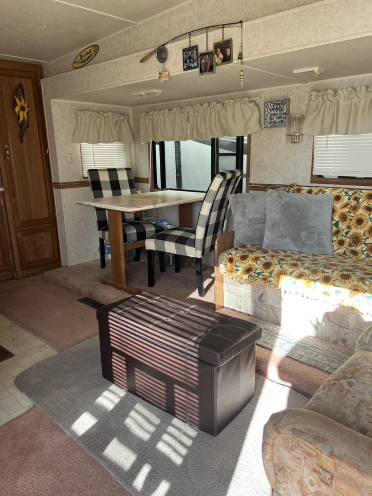 1994 Carl Lite updated and in excellent condition, everything works, new toilet, mattress and window coverings. Solar panels installed and included.
