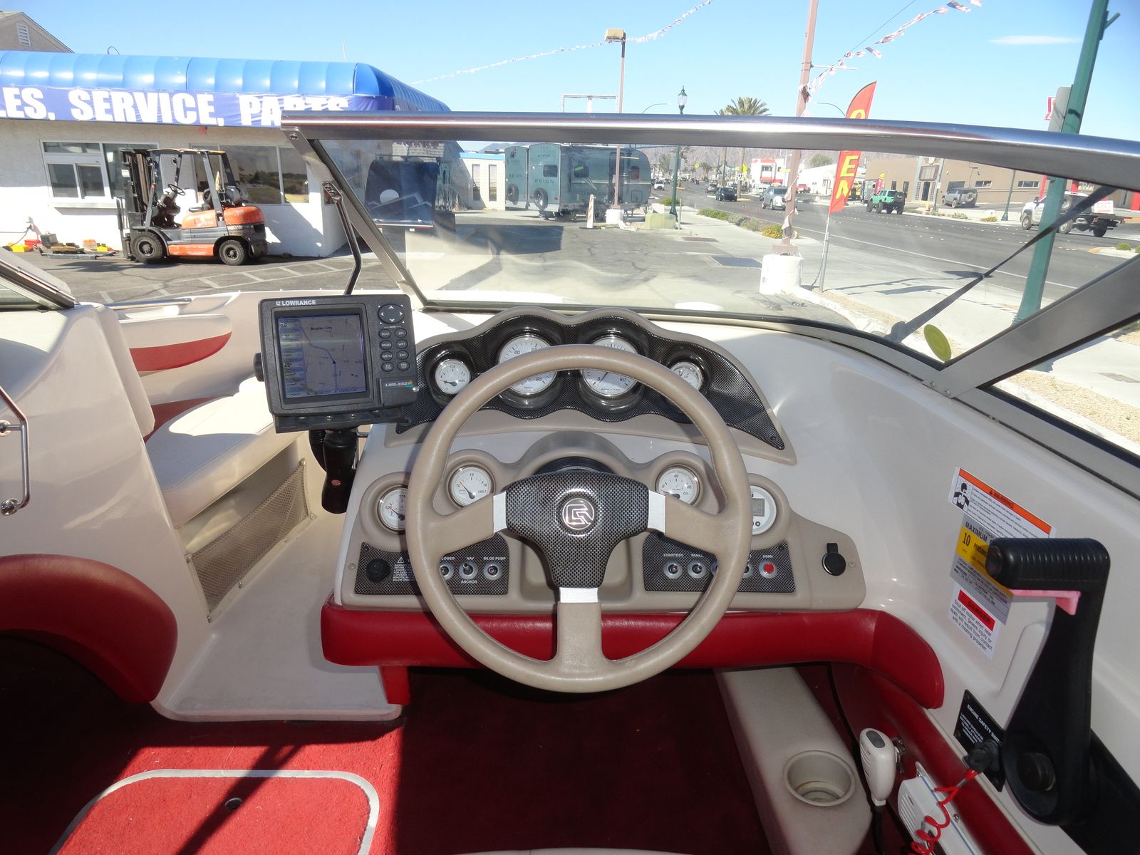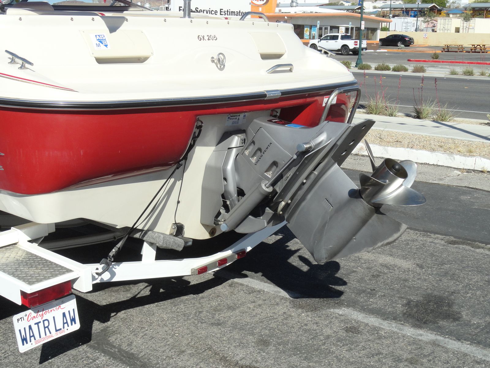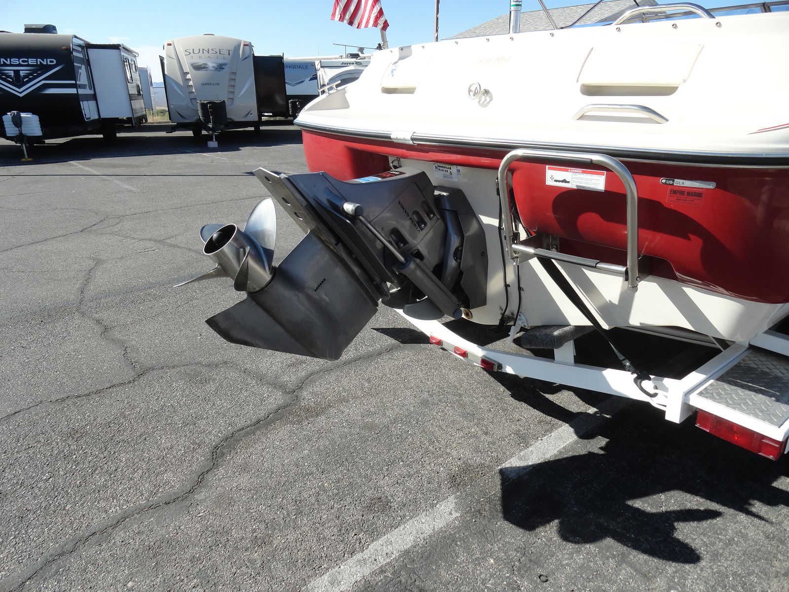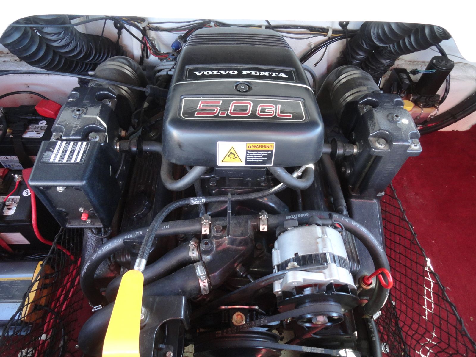 Featuring: Volvo Penta 5.0 GL, I/O, full instrumentation, Lowrance GPS, depth finder, tilt/power steering, stereo, glove box, carpet, cup holders, tons of storage, dual batteries w/switch, battery charger, bimini top, extreme weather bimini top, bow/cockpit covers, stainless steel prop, and a tandem axle trailer with matching spare, folding tongue, and trailer guides.