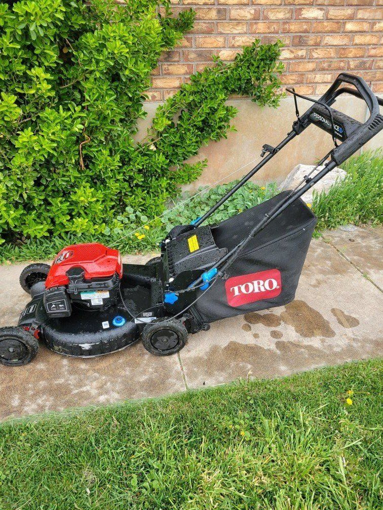 this is an excellent lawn mower one of toro's best residential units. starts at first pull. very easy to store.comes with the 163cc Briggs engine.