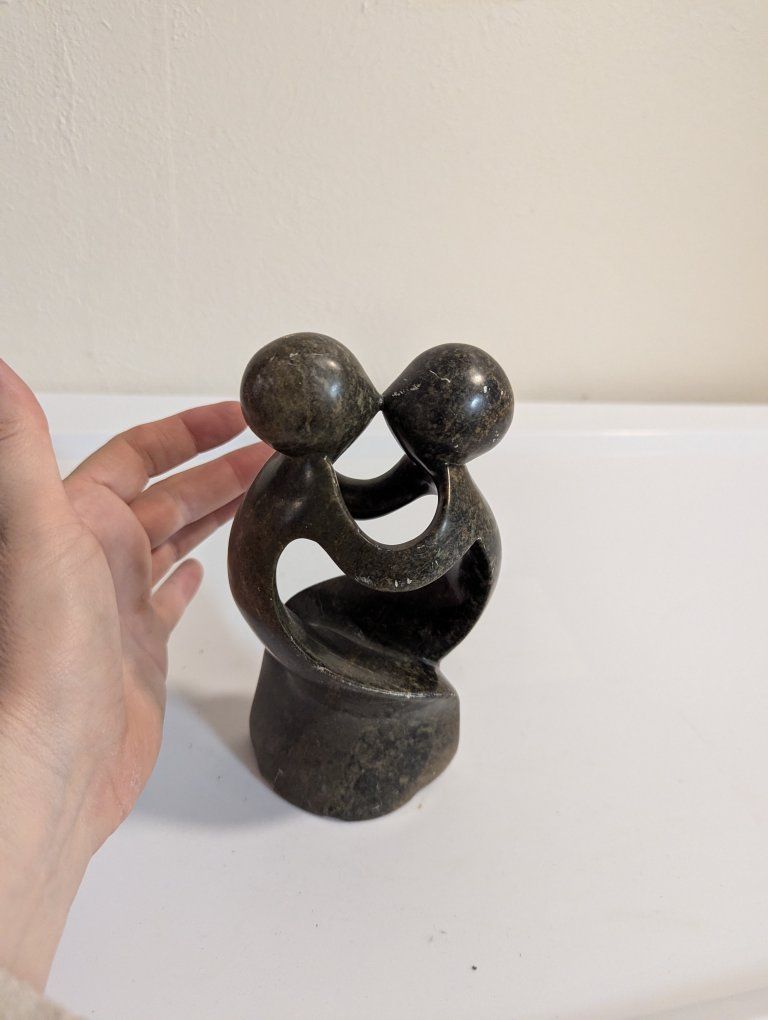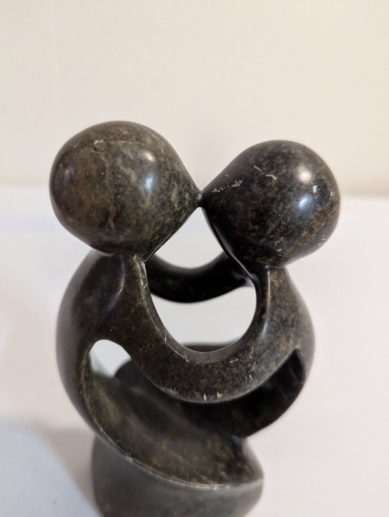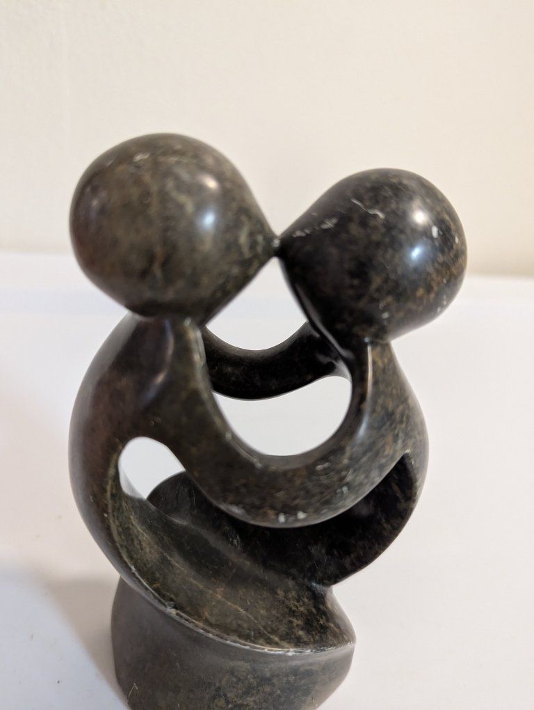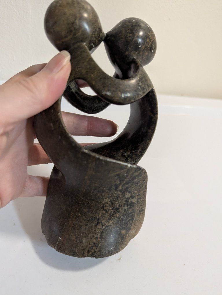 VenmoShona Stone Sculpture Couple Abstract Hand African Carved Art measures 3.25" x 2.5" by 7" tall