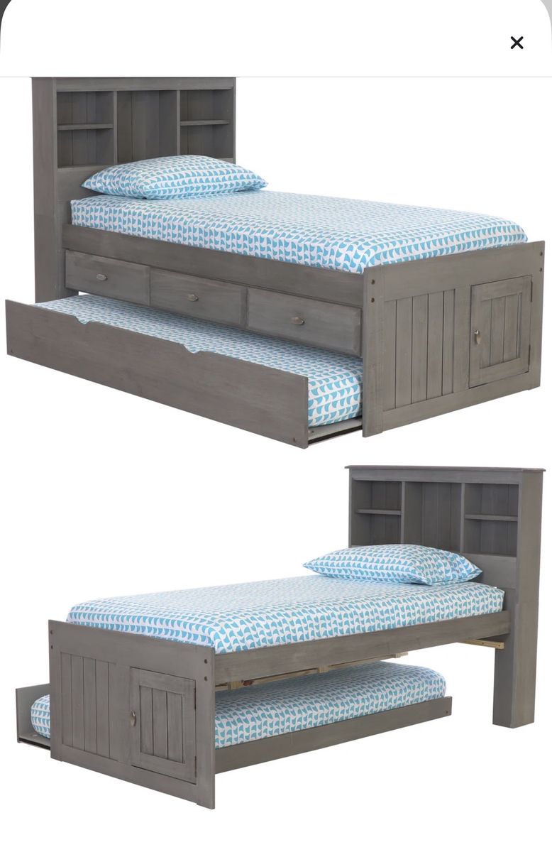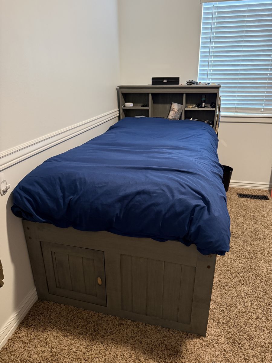 ZelleGreat bed! Son is too big for it now. If you’d like the mattresses and bedding we can work something out on that as well.