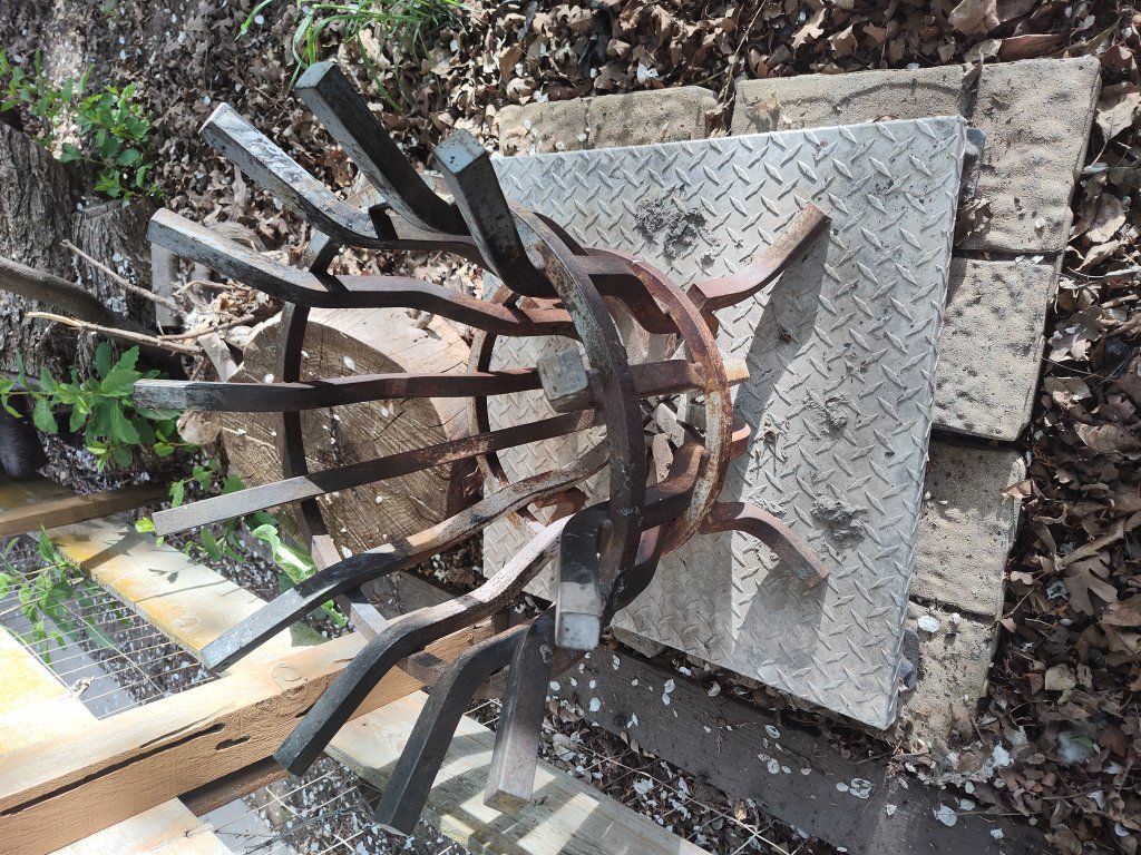 very thick and heavy steel fire pit. comes with heat deflector stand on the bottom and four pavers.