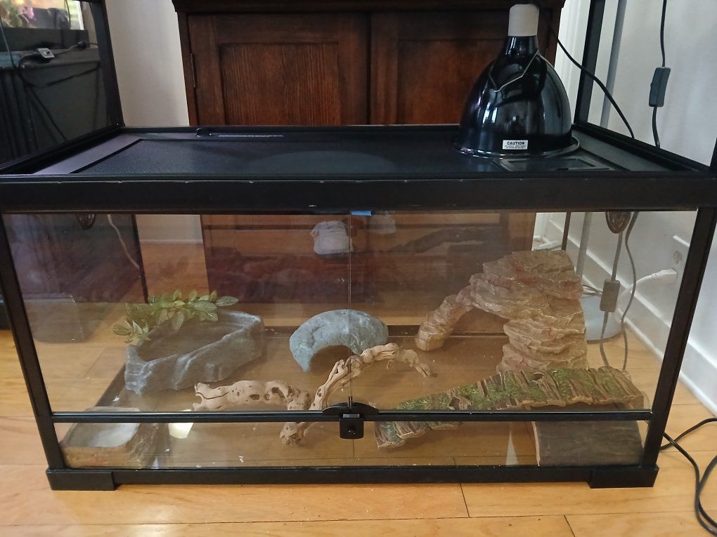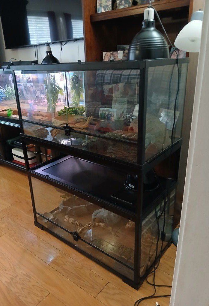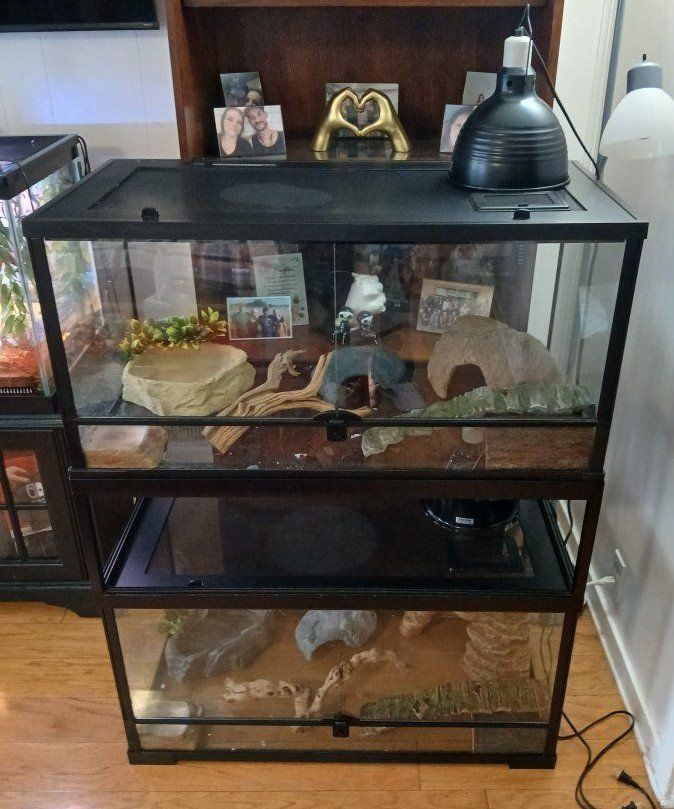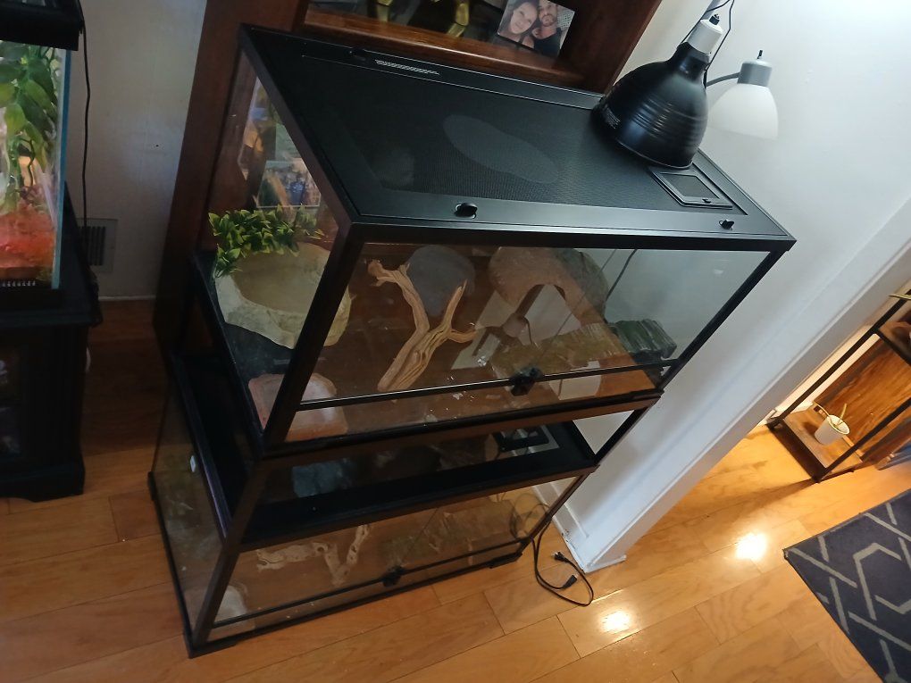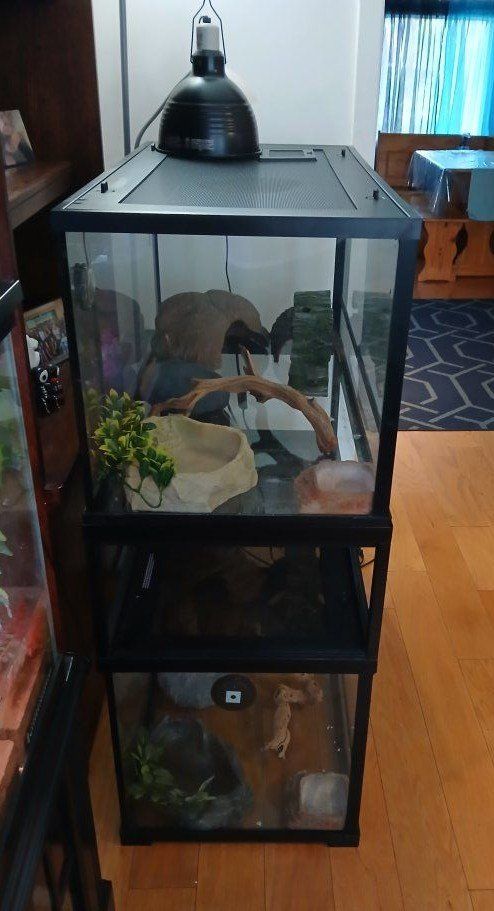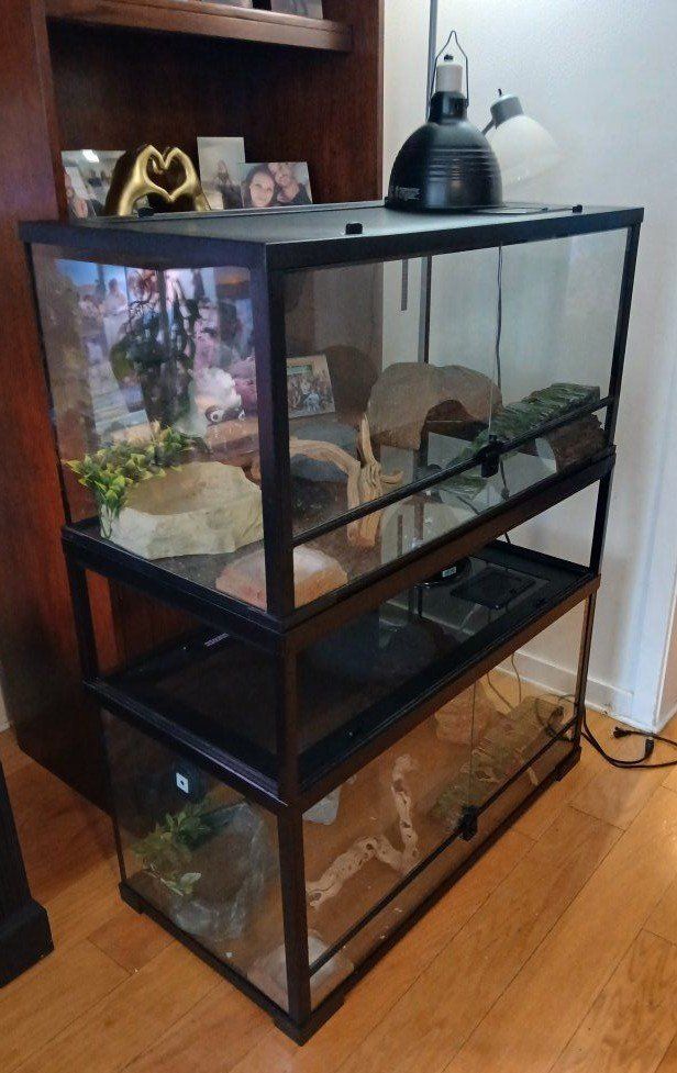 Two 40 gallon terrariums with all husbandry inside each encloser. Lighting and heat emitters in each lamp. Everything is in great condition and is included for you ready set go. $250 for all. Im interested in selling this as a set. firm on my price as well.