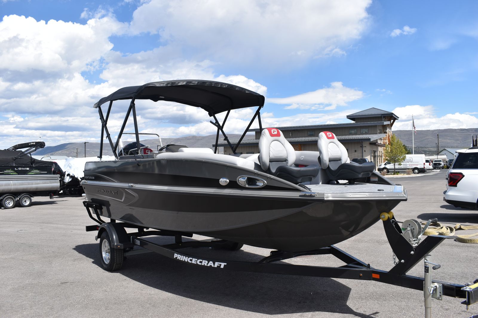 2026 Princecraft Ventura 194 With a 150 HP XL PRO XS Mercury Engine and Trailer. 10 Passenger Seating with Roto- Cast Bucket Seat Captain's Chair With Slide and Swivel, 4 Folding Seats, 2 Electric Bilge Pumps, Navigation Lights, Interior Lighting, Kicker Stereo With Water Proof Speakers, Tachometer, Voltmeter, Speedometer, Trim and Fuel Gauges, Storage Compartments, Livewell (20 Gallons), Rod Storage, Ice Box, Privacy Enclosure, Built In Gas Tank (46 Gallons), Bimini Cover, Boat Cover, and So Much More!!! Don't Forget To Ask About Our Extended Warranties!!!
