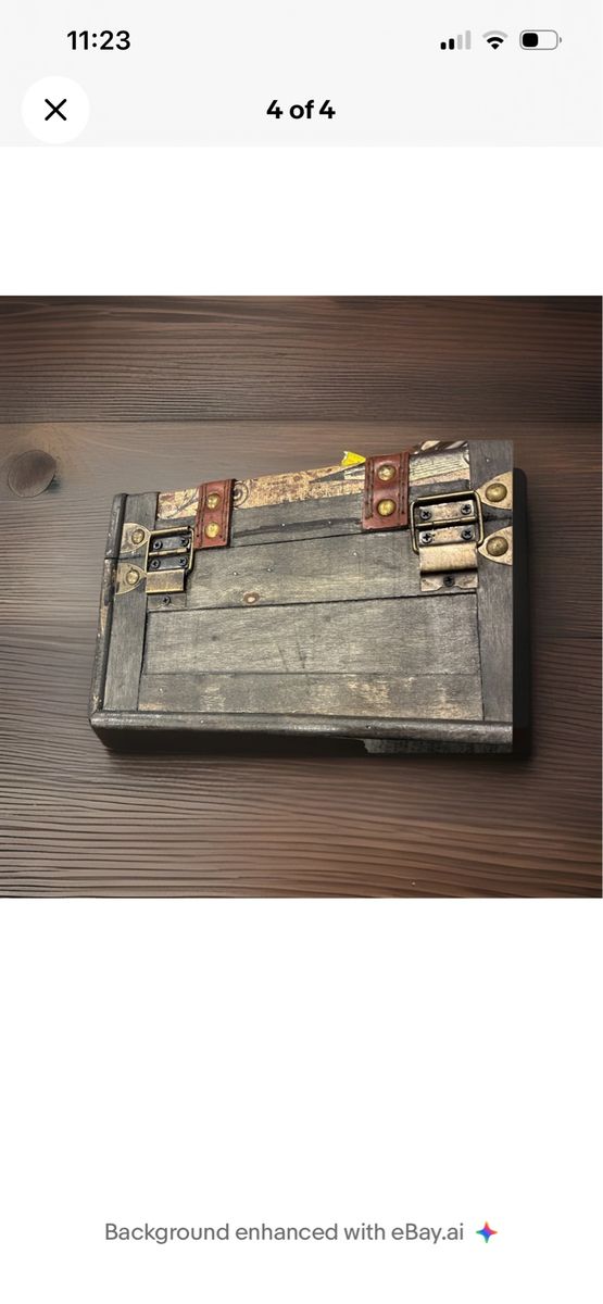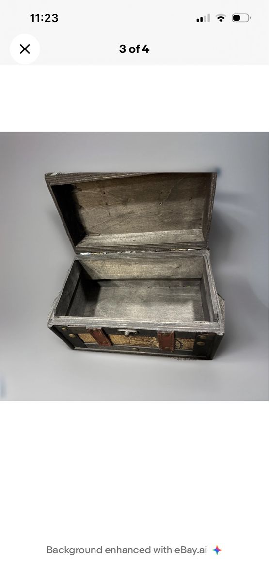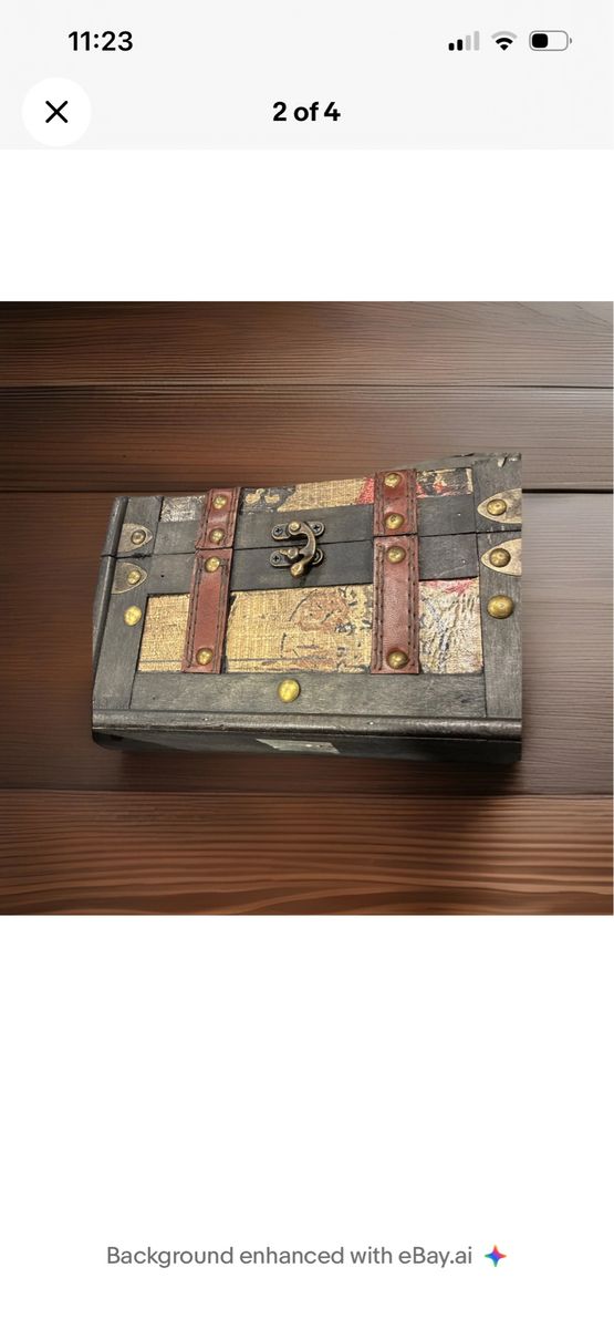 VenmoSmall Wooden Chest Leather Handles Decorated Vintage Rustic 5x9 In