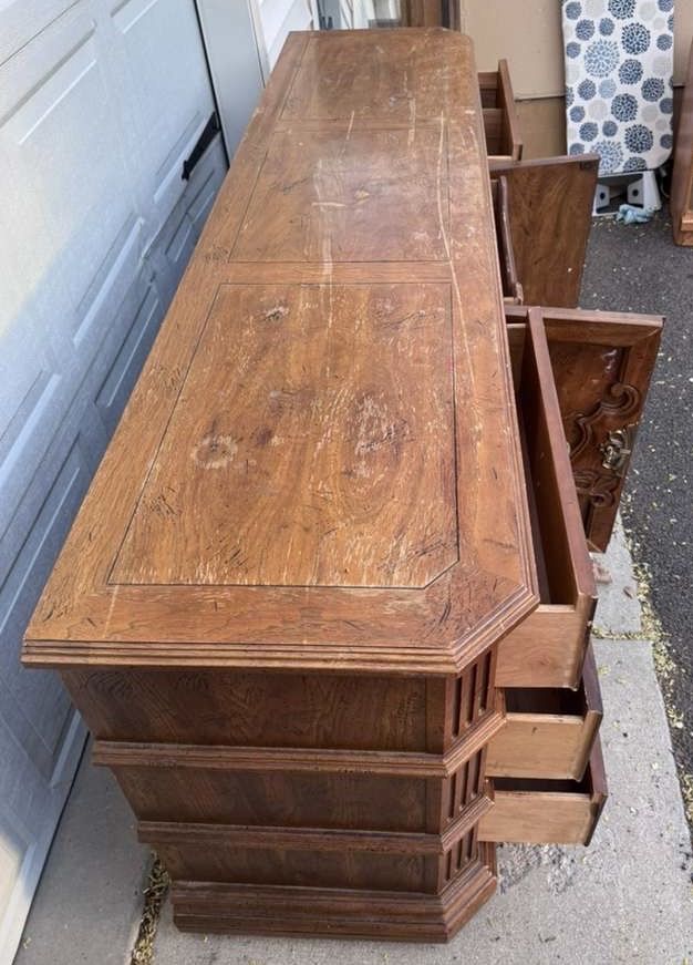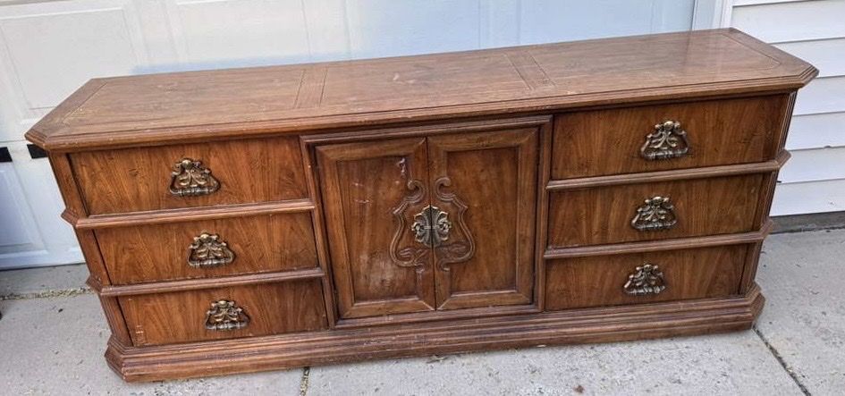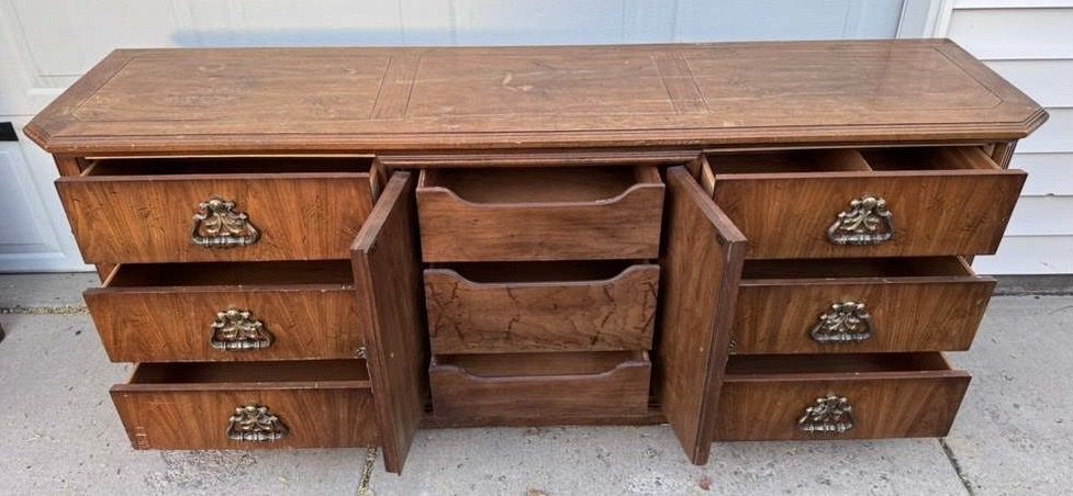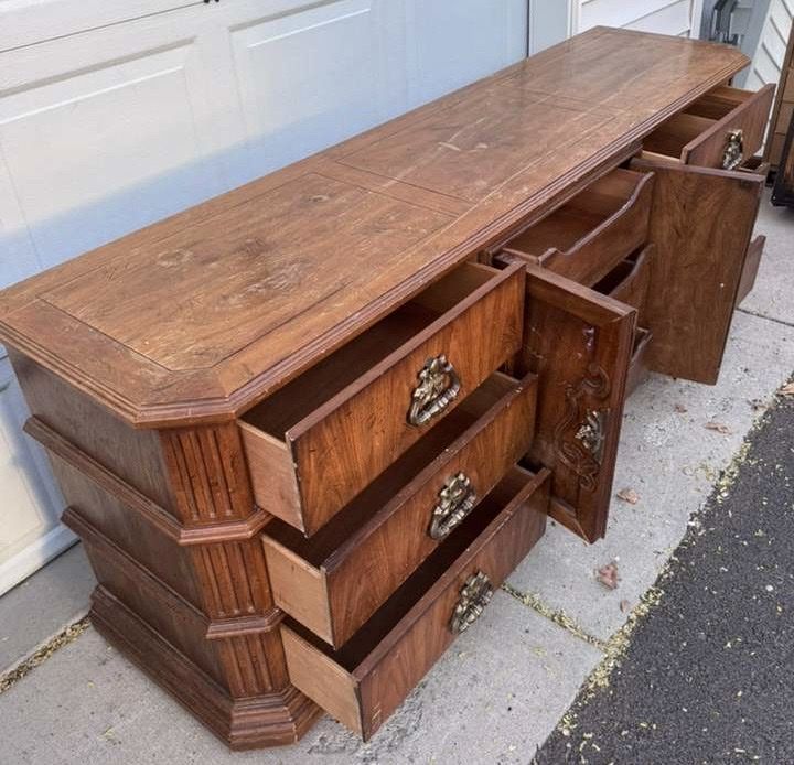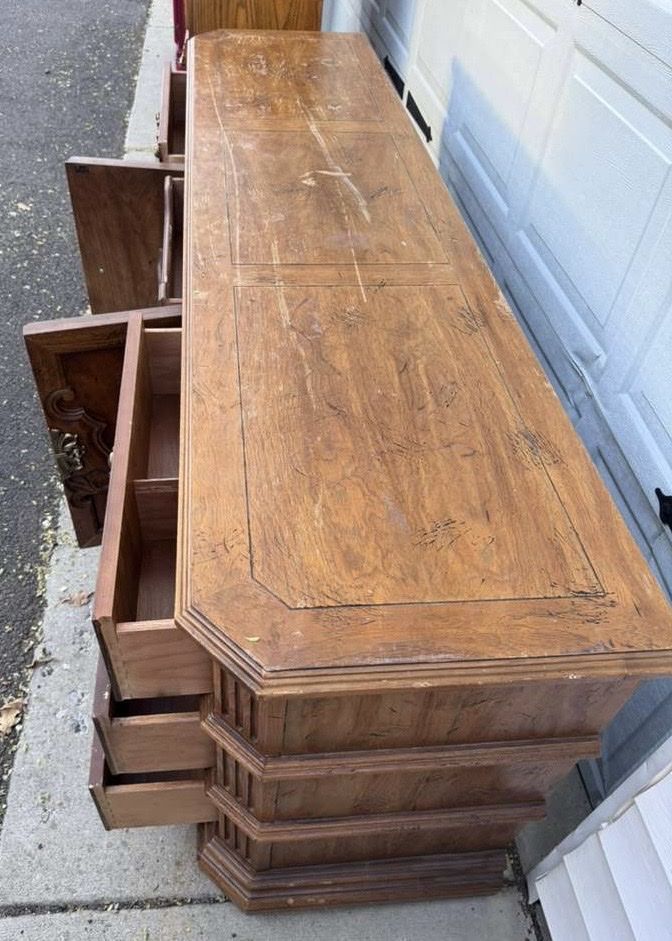 VenmoLarge wood dresser! Would be an awesome one to refurbish. Drawers are dovetail and all work well. Willing to deliver for $50.