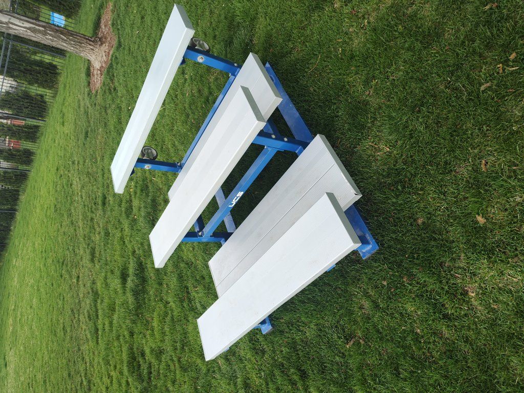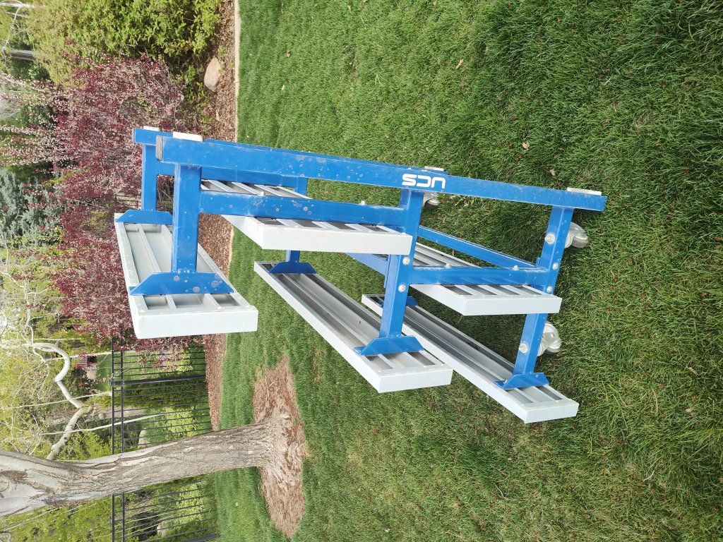 UCS bleachers. Indoor or Outdoor. see pictures for dimensions. Very good condition. Used for wiffle ball stadium. metal benches tilt and roll for storage.