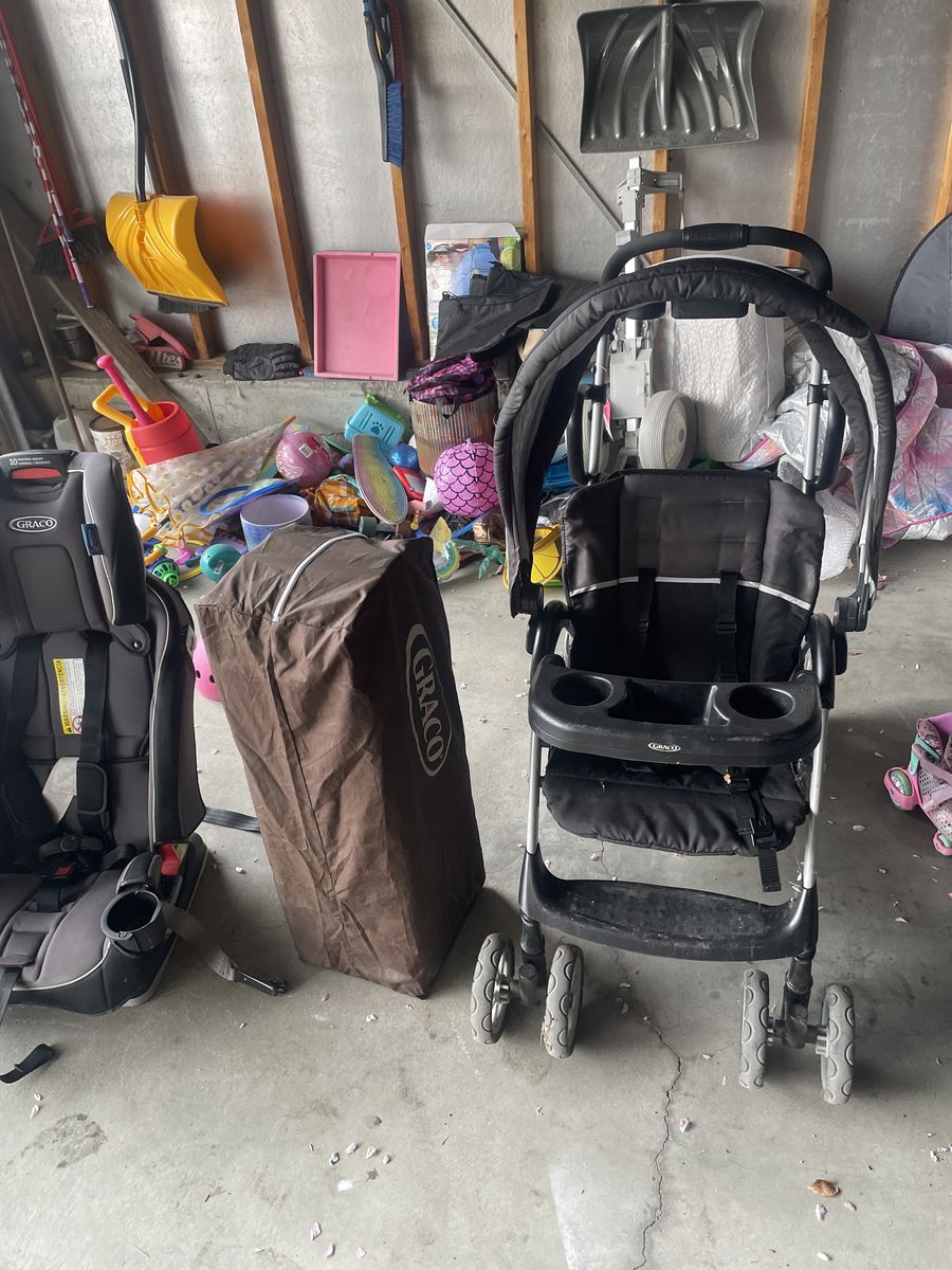 We have misc baby/toddler items. Can either sell as a lot or individually. Pack-n-play, single stroller, double stroller, baby seat. Make me offers!