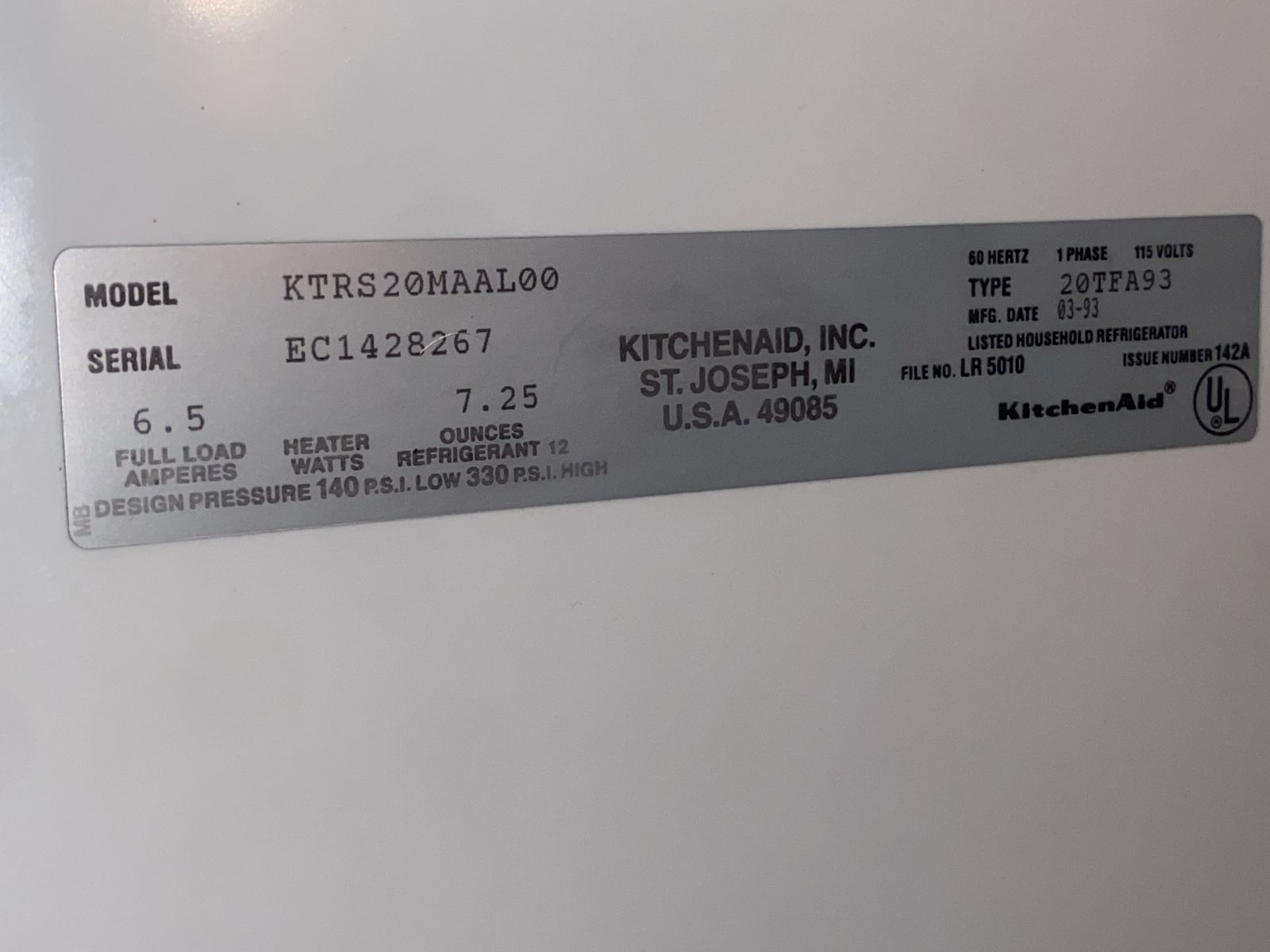 ZelleKitchenAid 20 cu ft refrigerator (model KTRS20MAAL00). Clean and fully functional. Top freezer design, good for garage or kitchen use. Keeps excellent temperature. Minimal cosmetic wear. Ready to use.