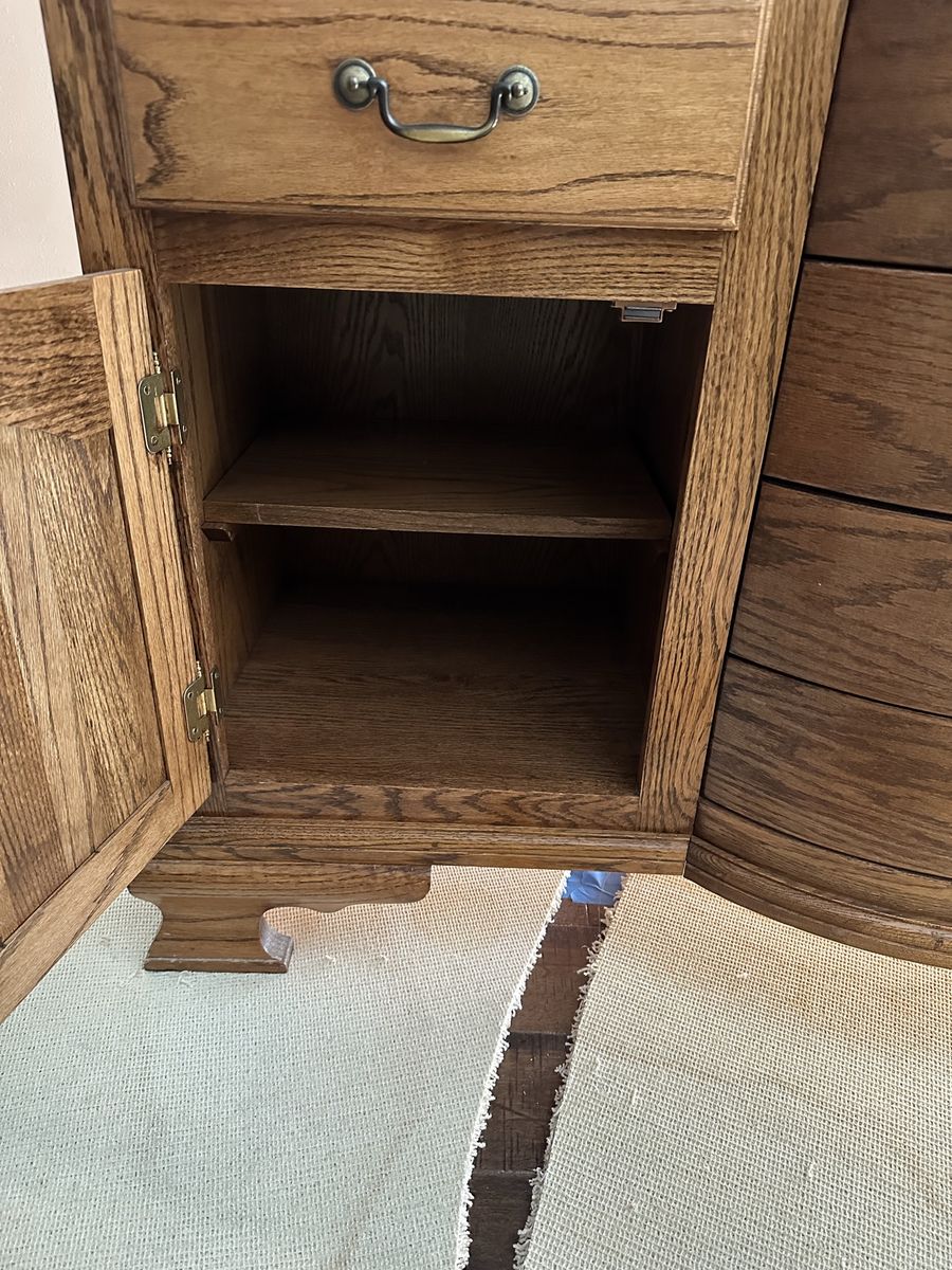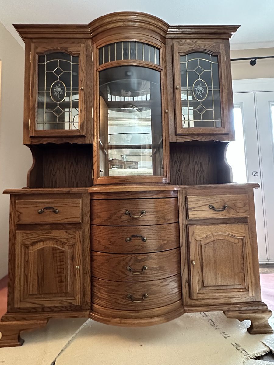 Solid oak hutch. Looks brand new. Well taken care of.