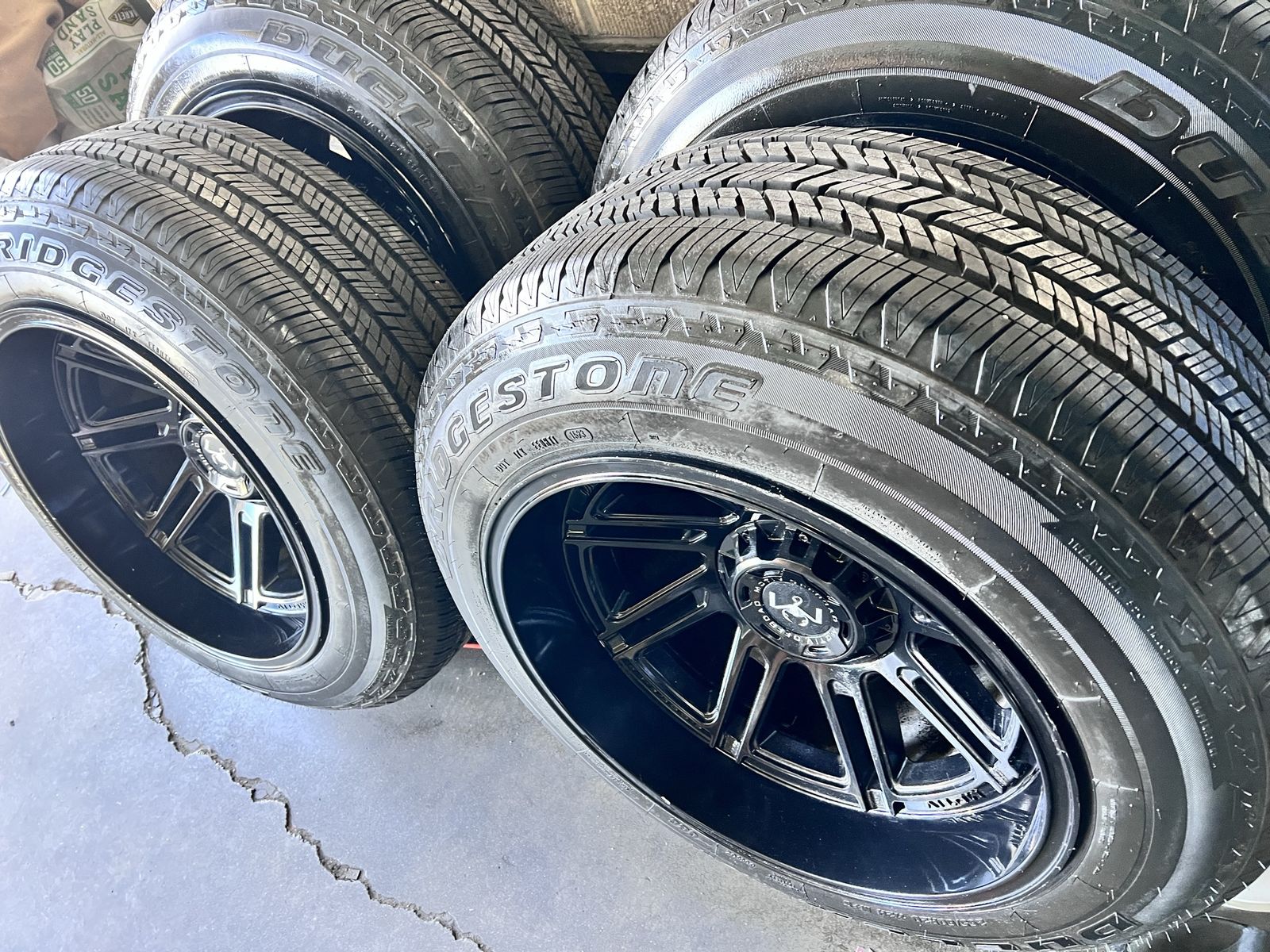 ApplePay265-60-20 Bridgestone (only 50 miles) 20x12 Motiv Wheels 6x5.5 and 6x135 pulled off a 2024 Chevy Silverado. Will also fit: