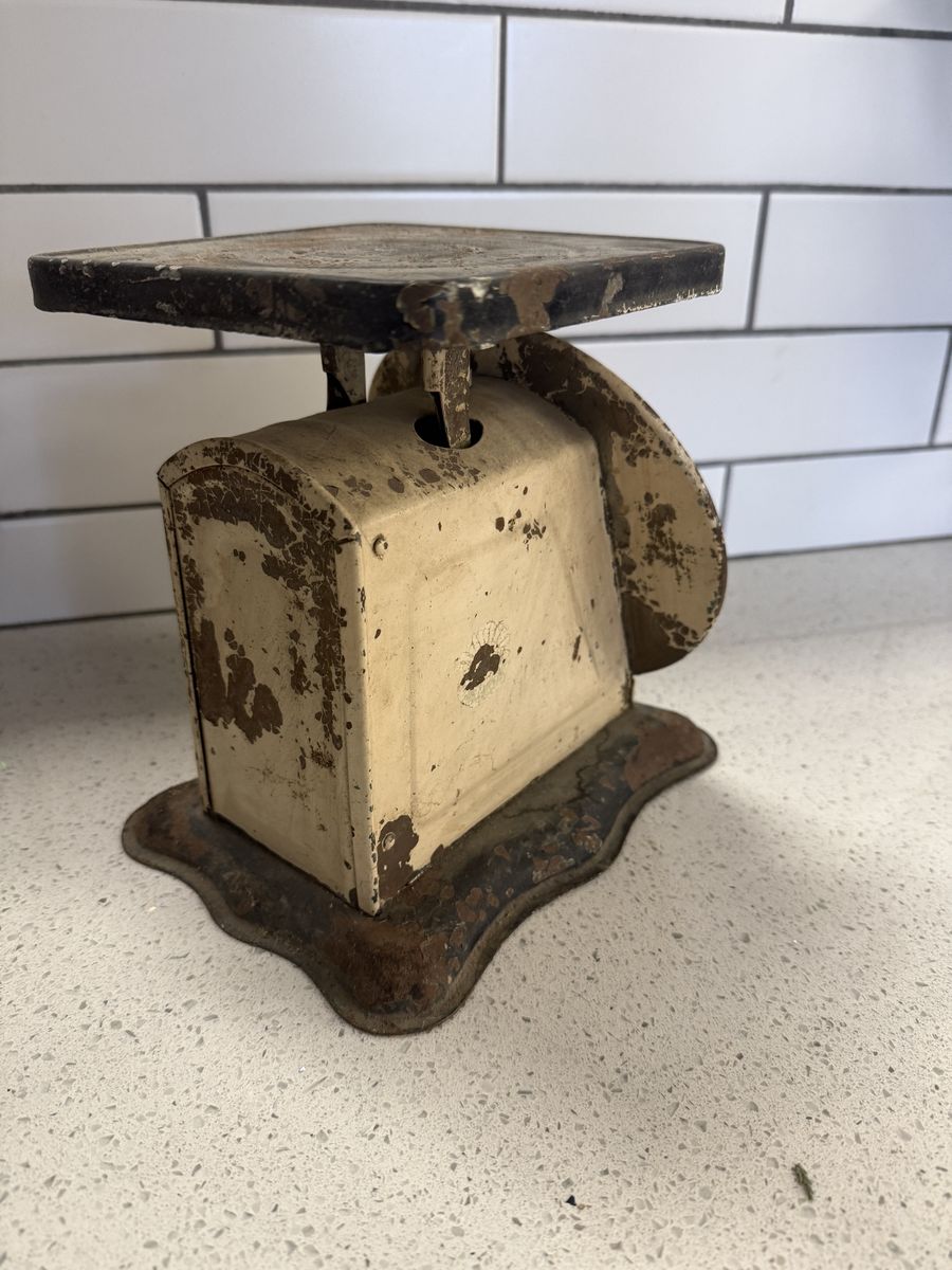 VenmoPerfect for a collector and also somebody who simply wants a cool and functional scale in their kitchen. The patina on this is gorgeous. It can weigh up to 25 pounds. Pickup in Park City proper. Or I can ship. Thank you for looking.