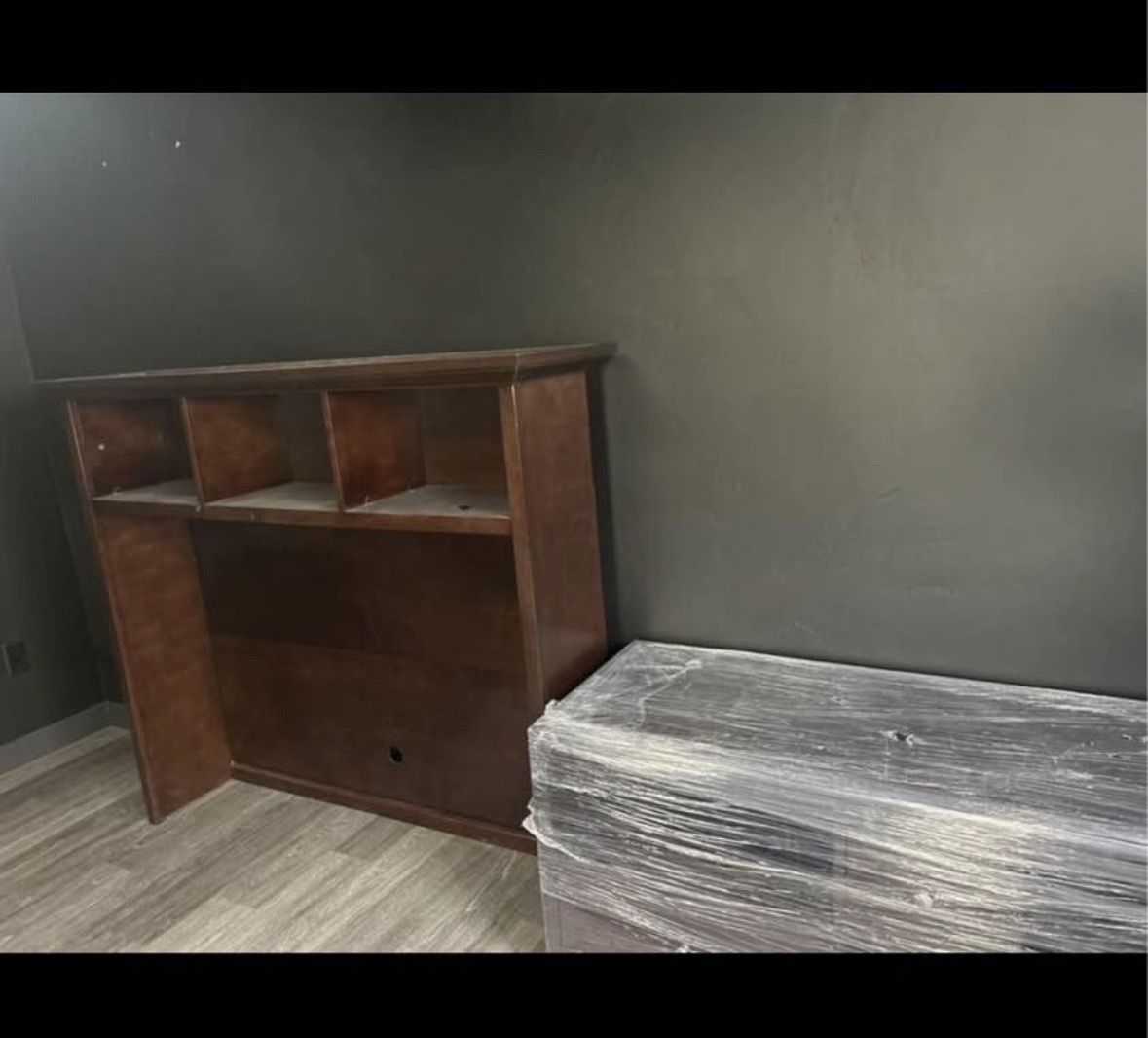 Bottom piece 2 drawers and 4 shelves Already wrapped in plastic for easy moving.
