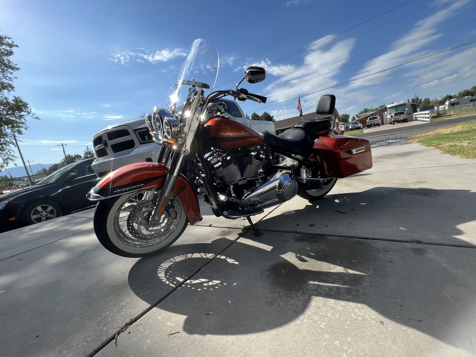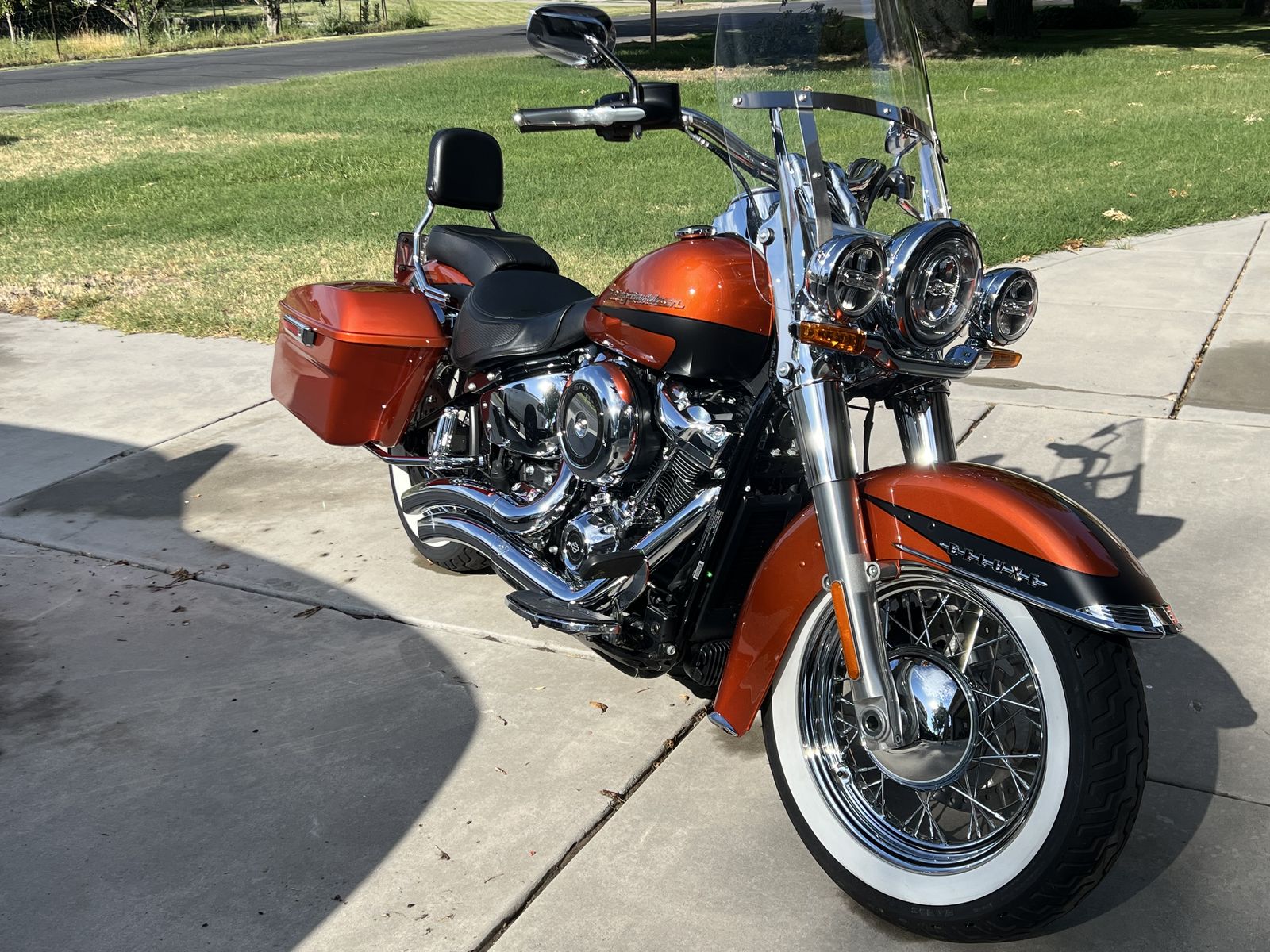 Clean 2019 Harley Davison deluxe in perfect condition, extremely low miles (3610), burnt orange, and suede black paint. Upgrades include exhaust, saddlebags windshield, passenger seat, passenger foot pegs. Fantastic bike and babied weekend cruiser. Call or text for more information or to come and see it..