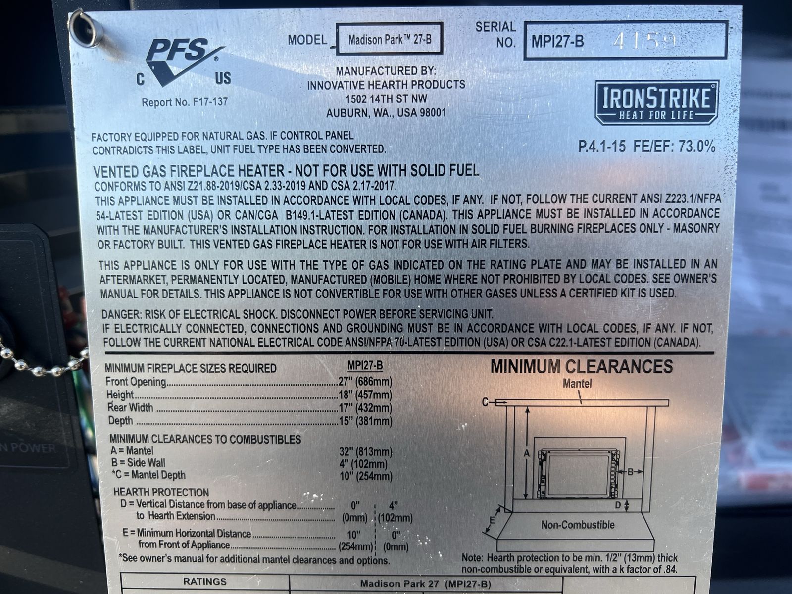 ZelleThis is a new, never installed gas fireplace. The Madison Park gas fireplace insert brings convenience and efficient heating to an existing wood-burning fireplace. Listed to fit zero-clearance factory-built and masonry fireplaces, the Madison Park gas insert turns your standard wood burning fireplace into a cost-effective heat source that displays a realistic gas fire for brilliant warmth and ambiance.