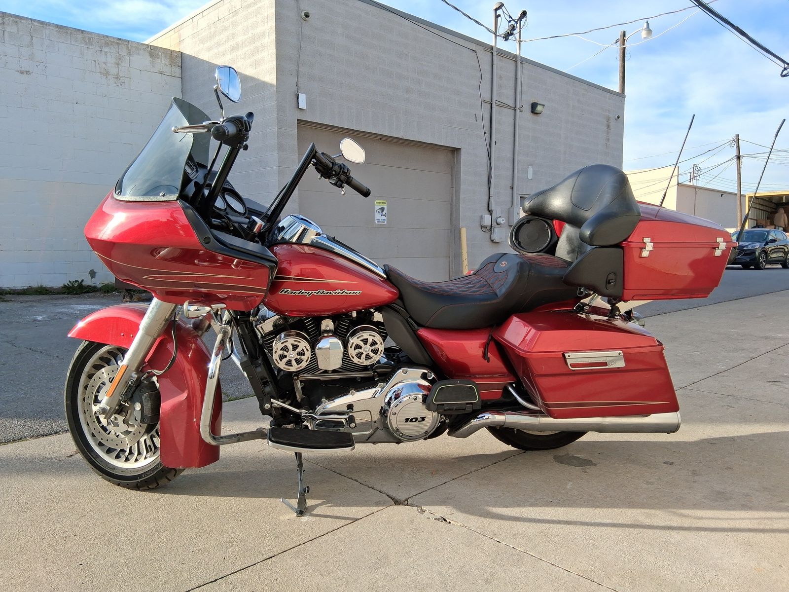 Ready to cross state lines in total comfort? This 2013 Harley-Davidson Road Glide Ultra is the king of the highway. Finished in a beautiful, deep red, this bike features the legendary frame-mounted "shark-nose" fairing that Road Glide fans swear by for superior stability and wind protection in high-speed cruising.