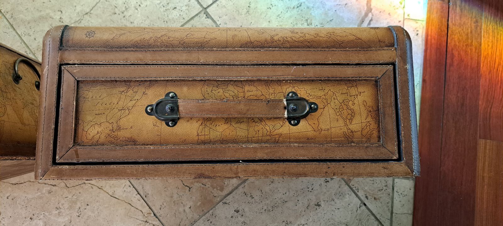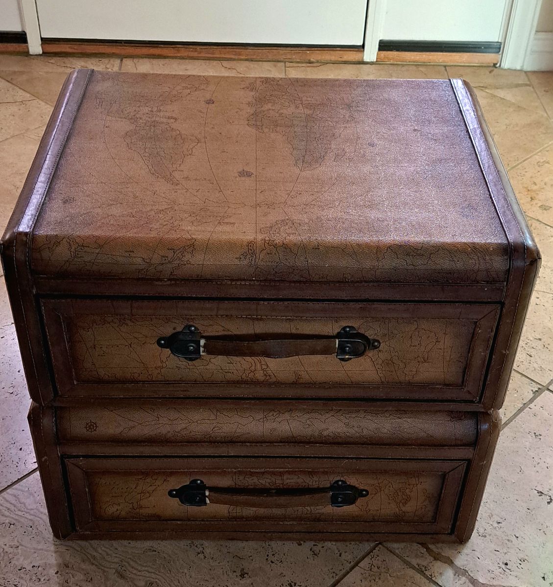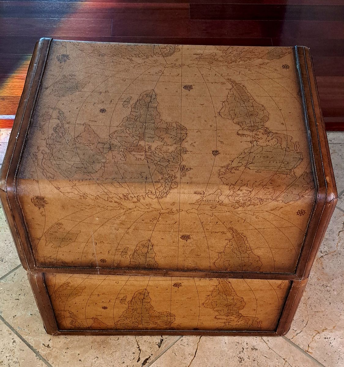 ****These pieces are in the style of late 20th century leather campaign furniture similar to Maitland-Smith pieces, but I have not found a maker’s label.”