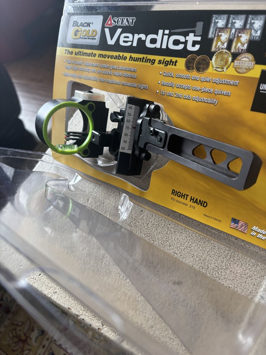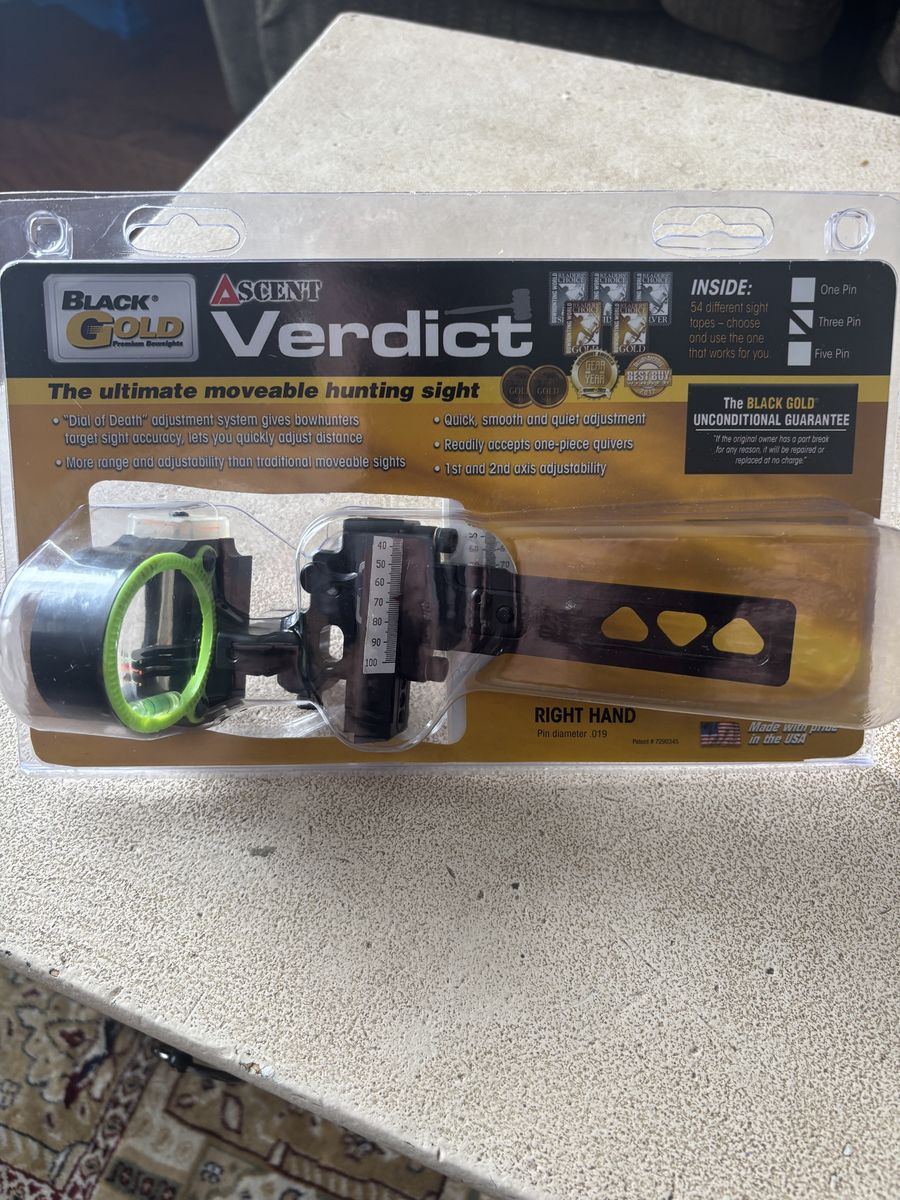 VenmoBlack Gold Ascent 3 pin slider dovetail for Mathews bows. Excellent condition includes sight tape.