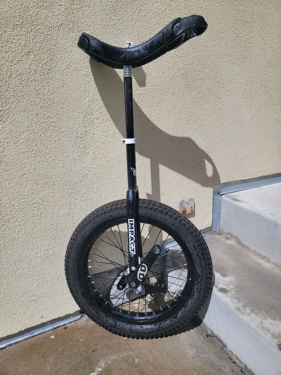 Impact Athmos 20" light duty trials unicycle. In nearly new condition, as I never could get the hang of tricks, and just didn't ride it that much. It currently has no pedals on it, but if you need a set and buy at list price, I can probably find some for ya. $200