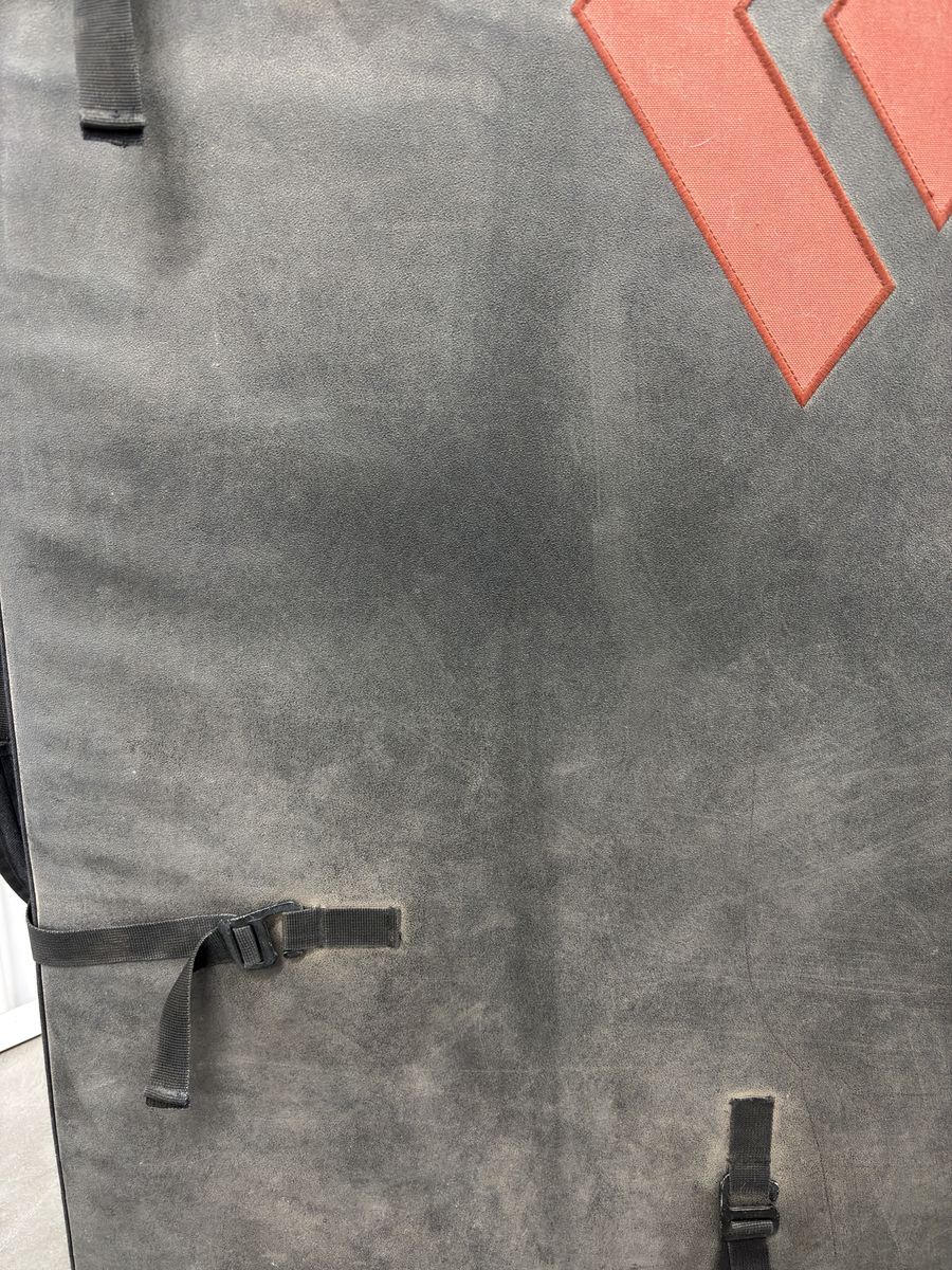 No bending/warping; foam in great condition and ready for your next highball! No tears outer fabric. Buckles, straps, and zippers fully intact and functional.