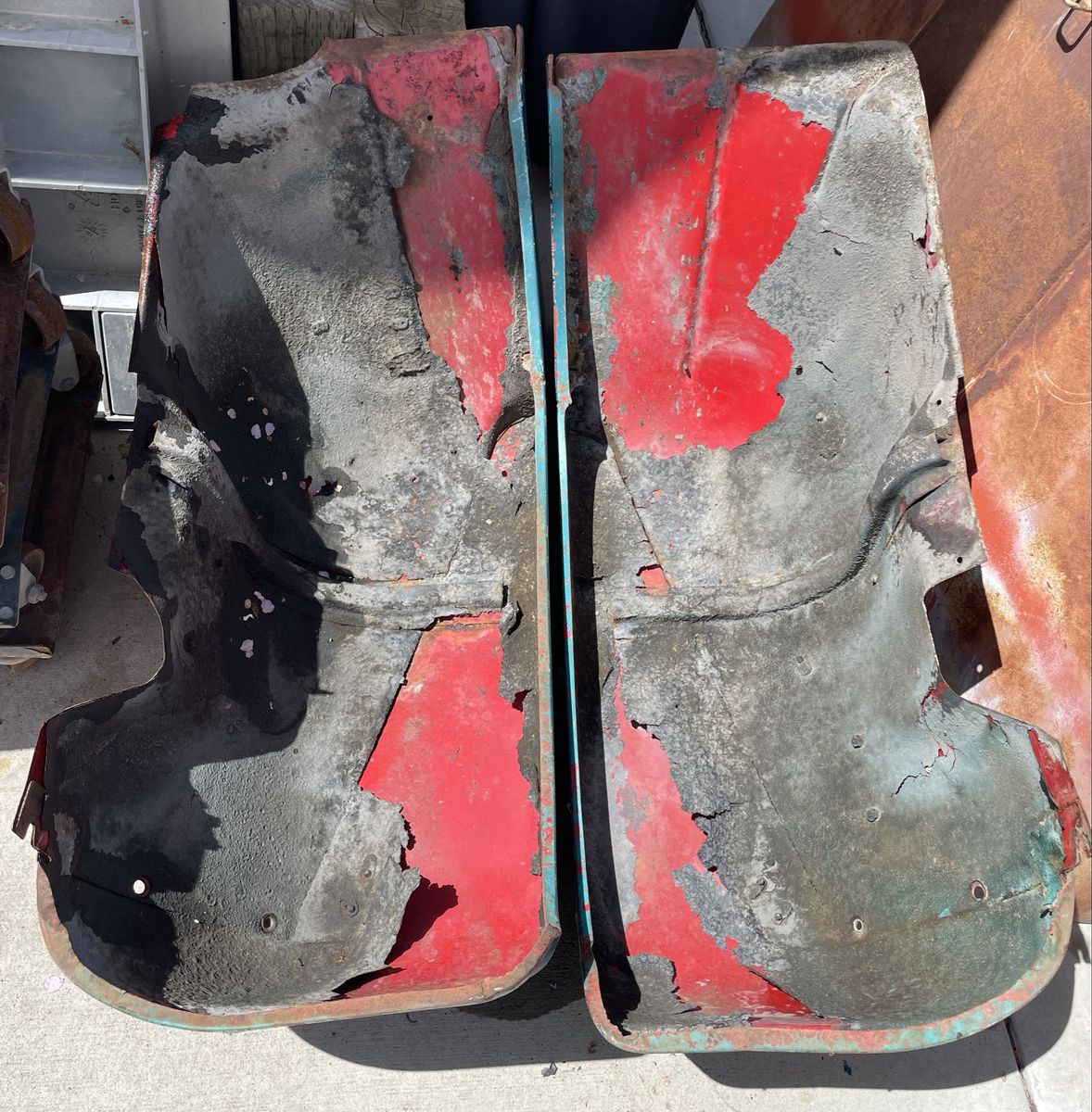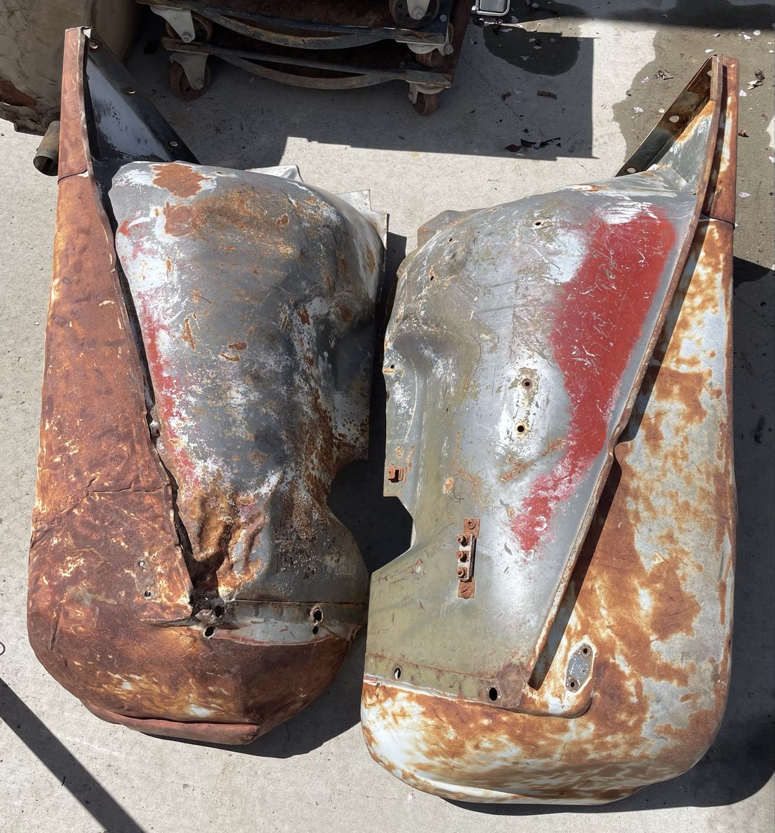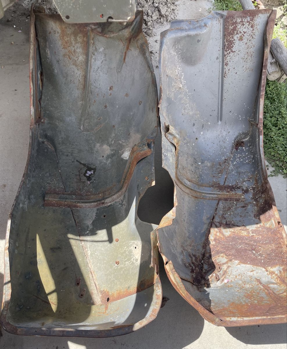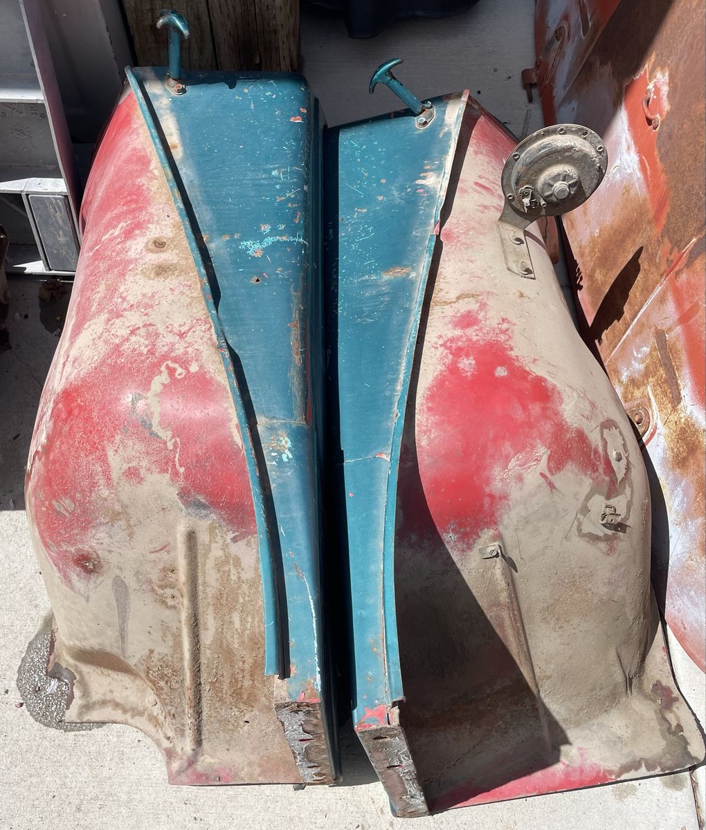 PayPalThis set of early Willys Jeep CJ5 fenders does not have the hole or break in the crease for side lights. These could be used for an M38A1 as well. Straight. Some rust that appears to be superficial. I have a second set that both have been crunched in the front I will throw in for patch pieces, etc. Located near the Riverton/Herriman (Utah) border approximately 14000 S and 5000 West for local pickup. I work M-F just off of Bangerter and California Ave. if that is more convenient.