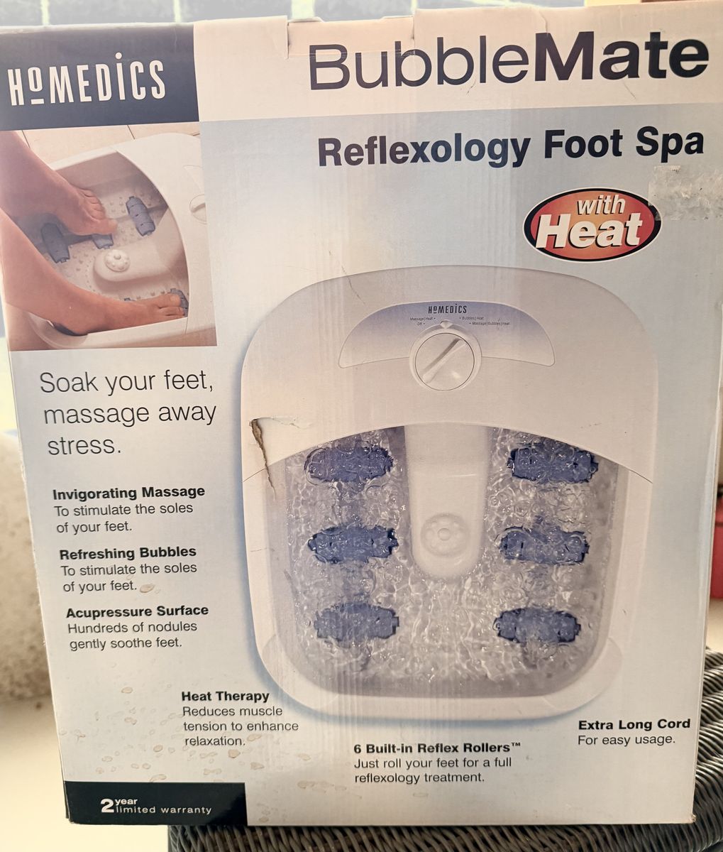 Bubble Mate Reflexology Foot Spa with Heat made by HoMEMEDICS. A treat for your tired achy feet at home anytime! New and in original box. Cash only please.