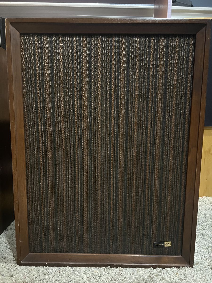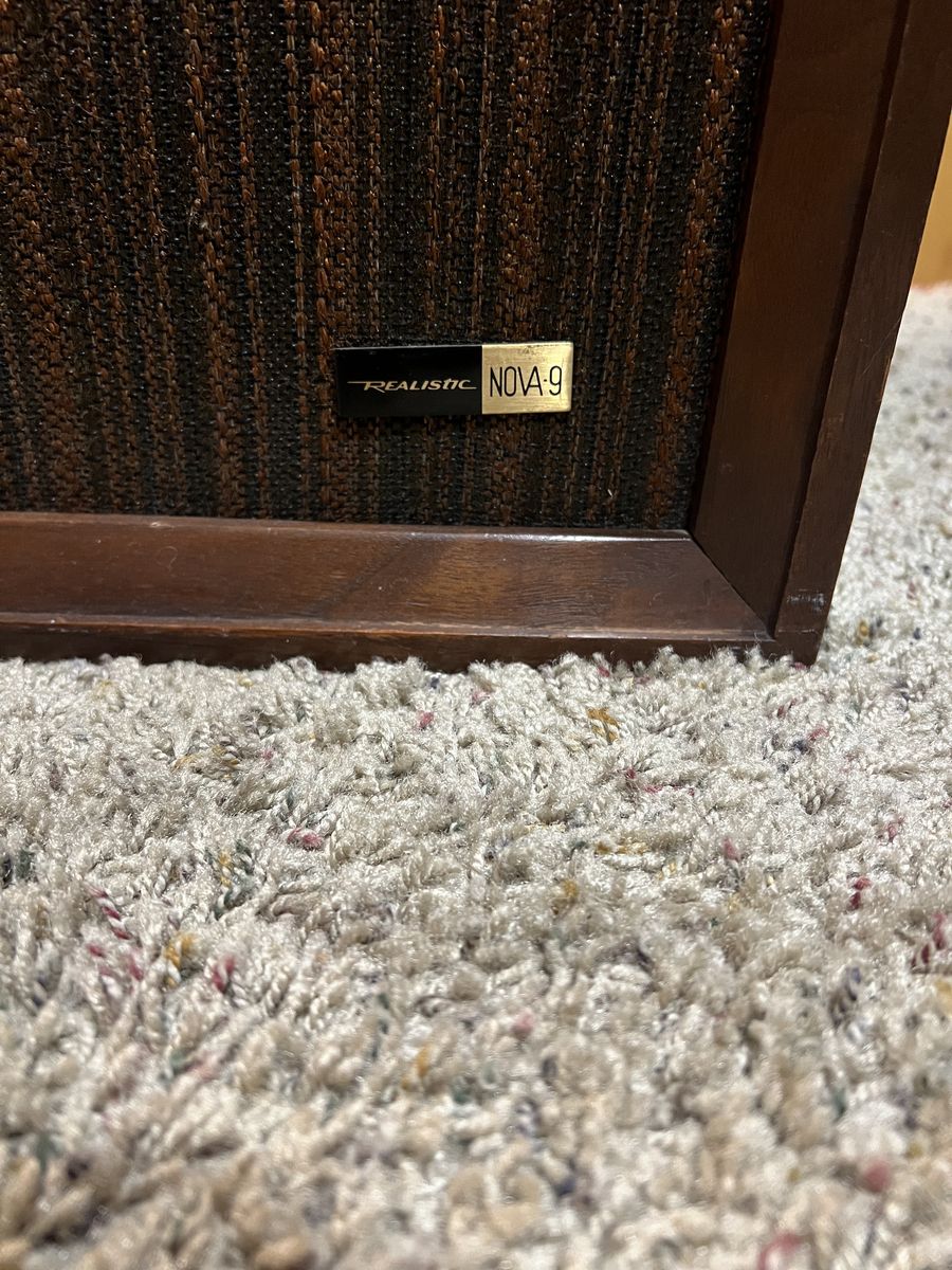 PayPalPair of Realistic Nova 9 Speakers. Light scratches on top. Overall good condition. Real wood cabinets. 3 way speakers with 15 inch woofers. Sound very good. Great vintage look. 27"Hx20.5"Wx13.75D. Text please.i