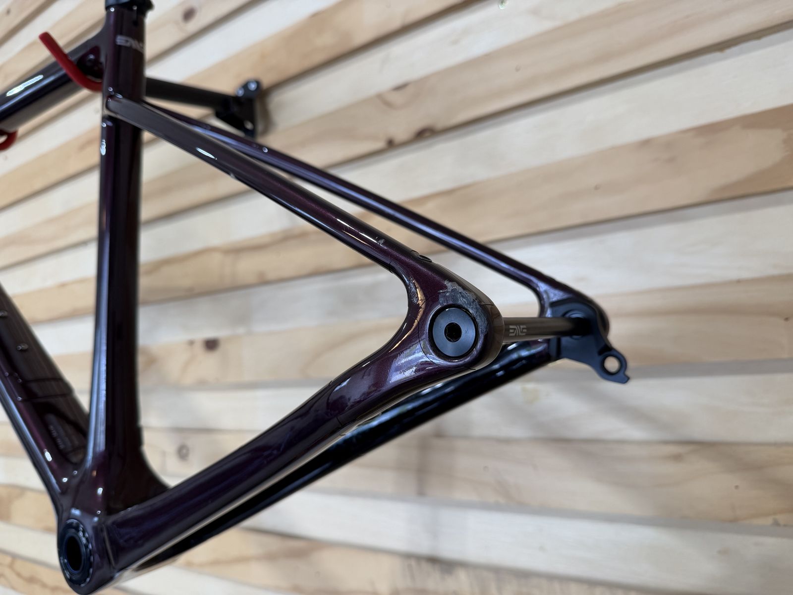 Frame has one season of use and has been fully RideWrapped since day one. Overall in really good condition. There is one small cosmetic paint chip near the rear thru axle (pictured), but no structural damage.