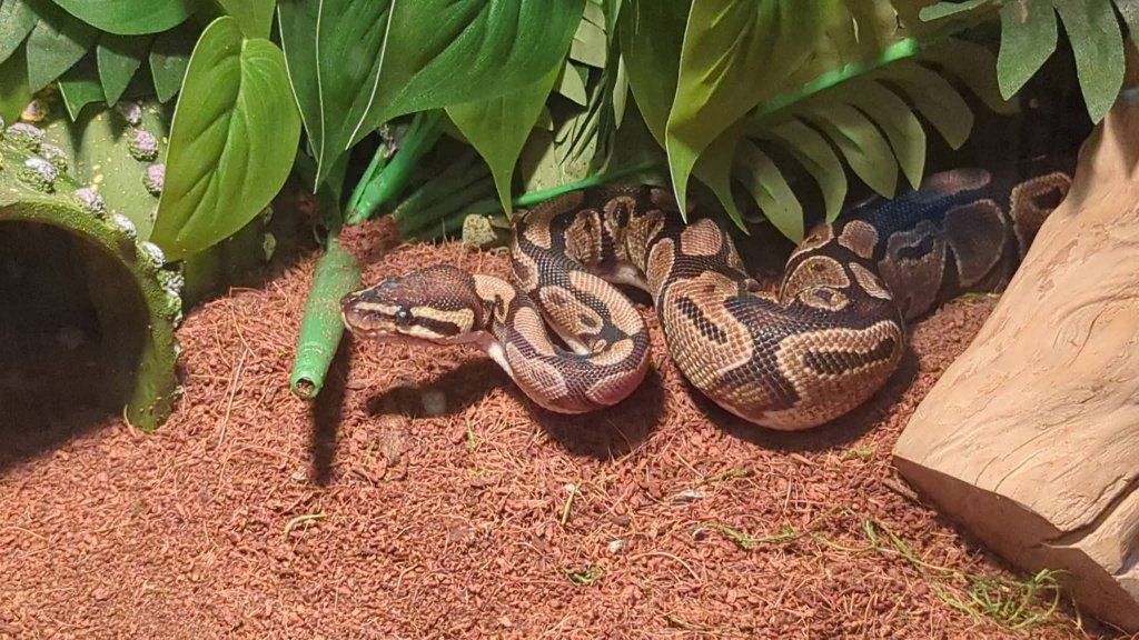 Venmostacking set up both 40 gallon front opening doors and everything you see hear goes with them also more not pictured i am located in Richmond the snakes are ball pythons guess told we're both females one was probed by old breader other hasn't but was told was female one normal ball python the other is a orange dream and is very beautiful great with kids held alot with kids. want them going to a very good pet home were there handled and loved.text best