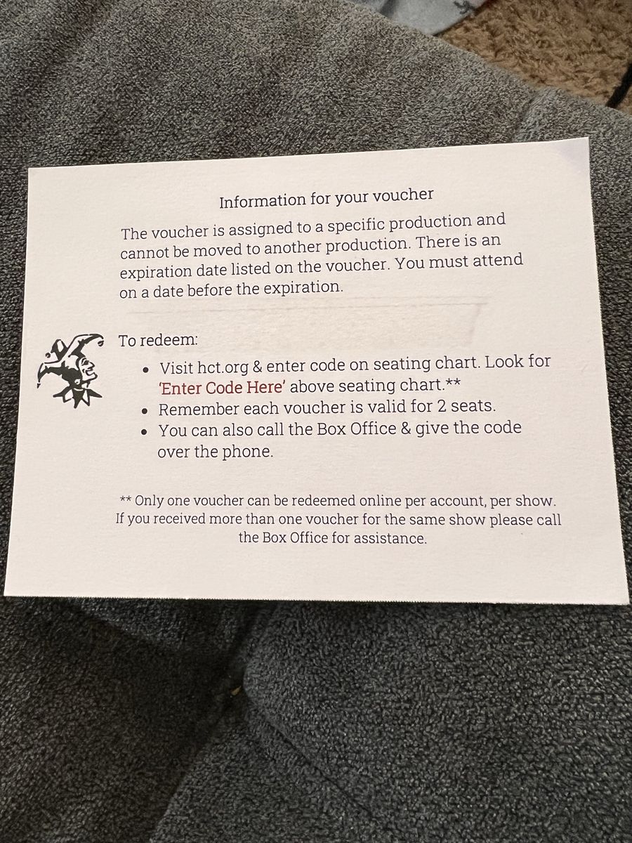 Venmo2 ticked to see "Hallmarked" at Hale Center Theatre. Must be used by May 23, and only good for Mon-Thurs shows. $120 is for both tickets.