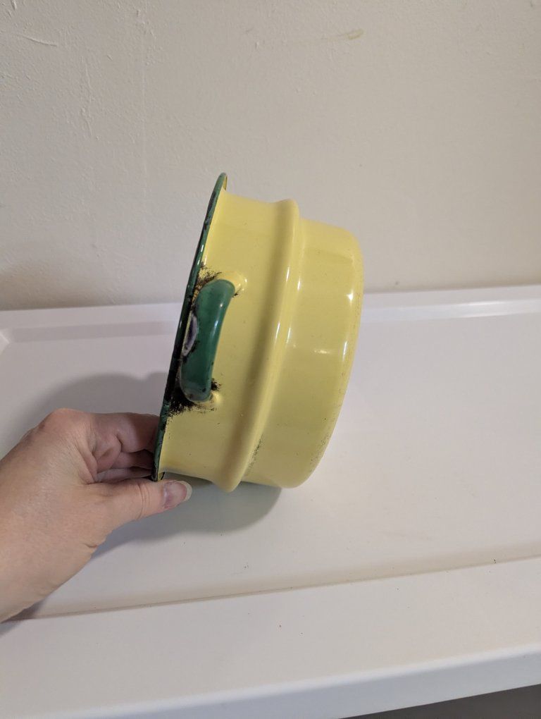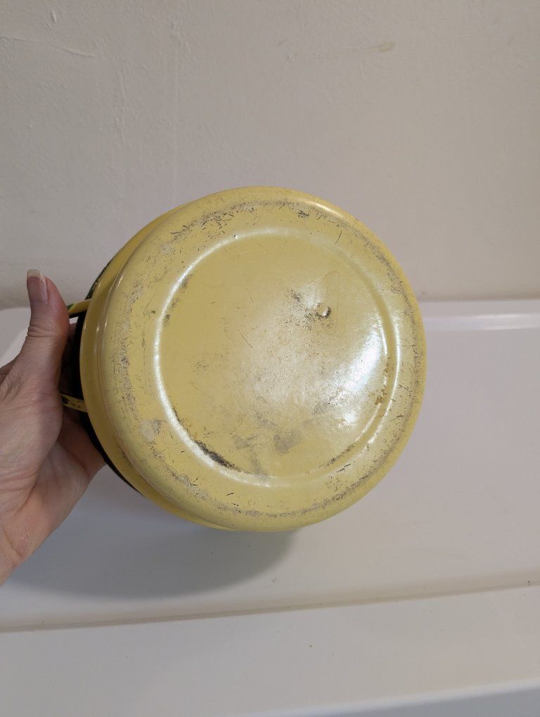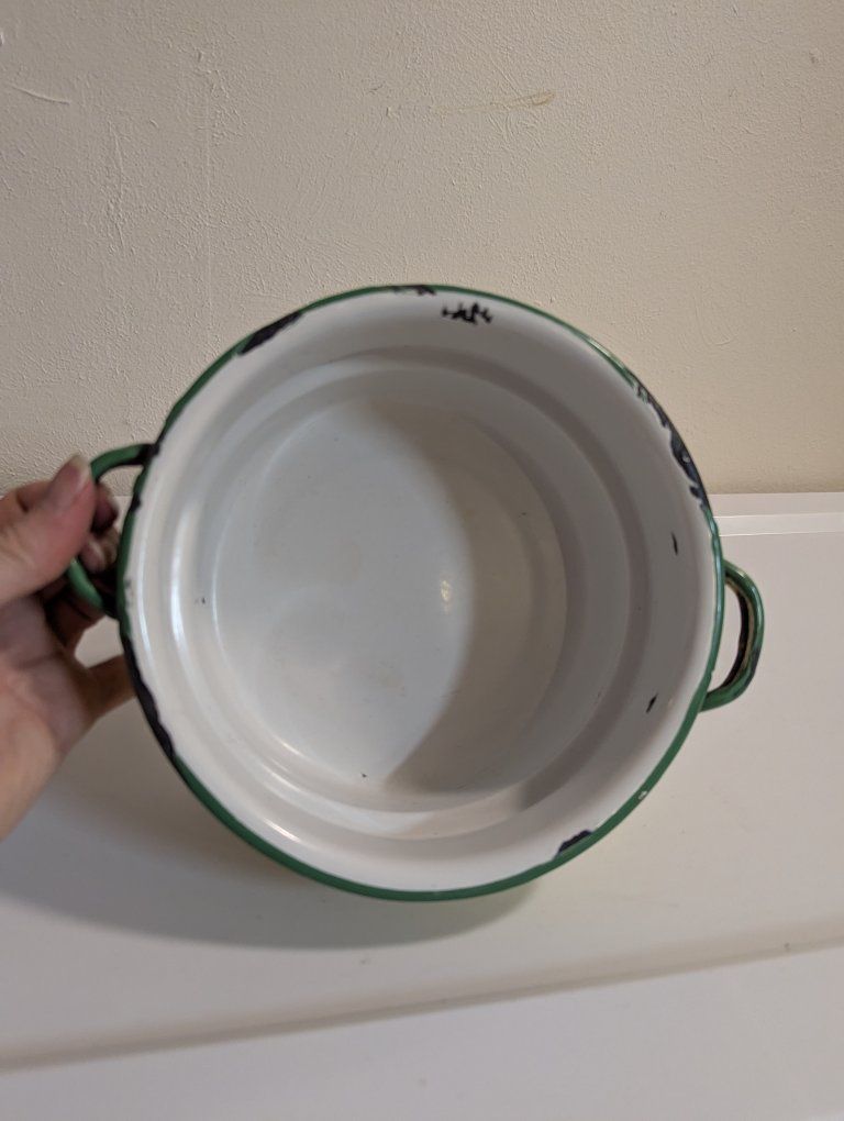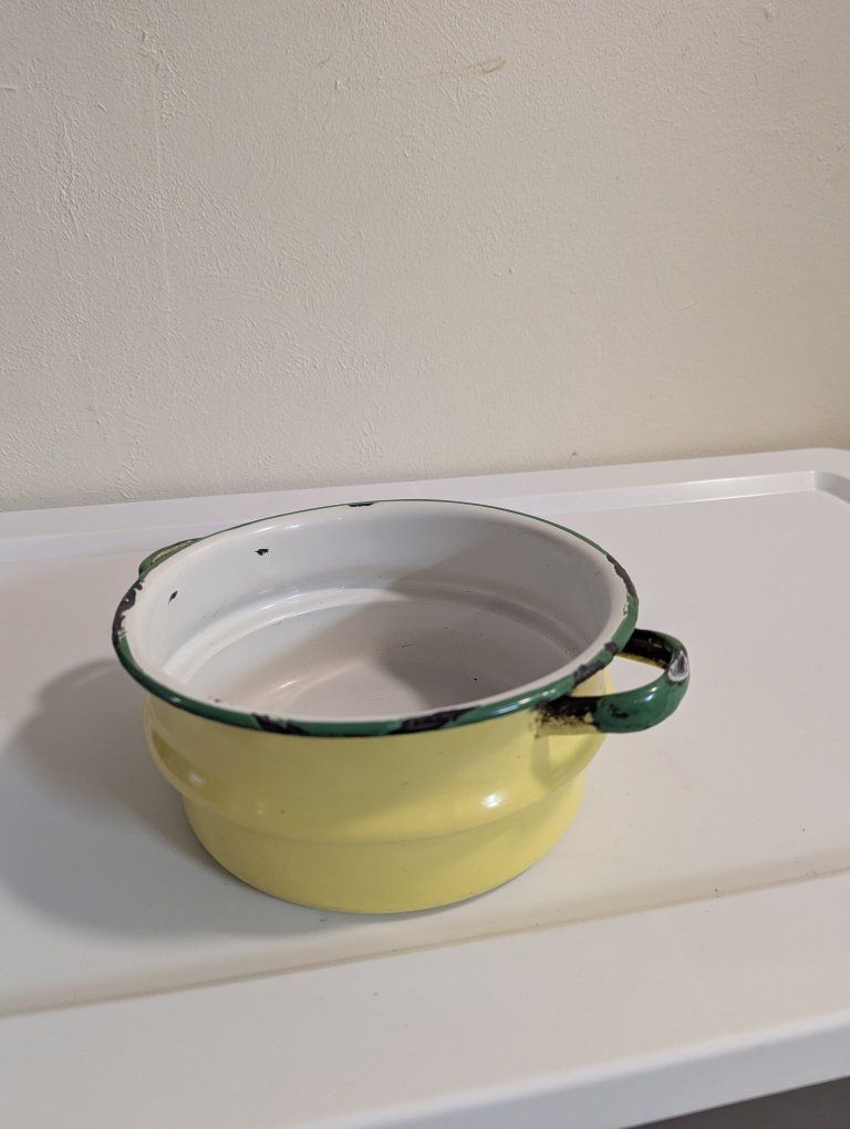Venmoyellow and green Japanese enamelware with white interior. metal pot
