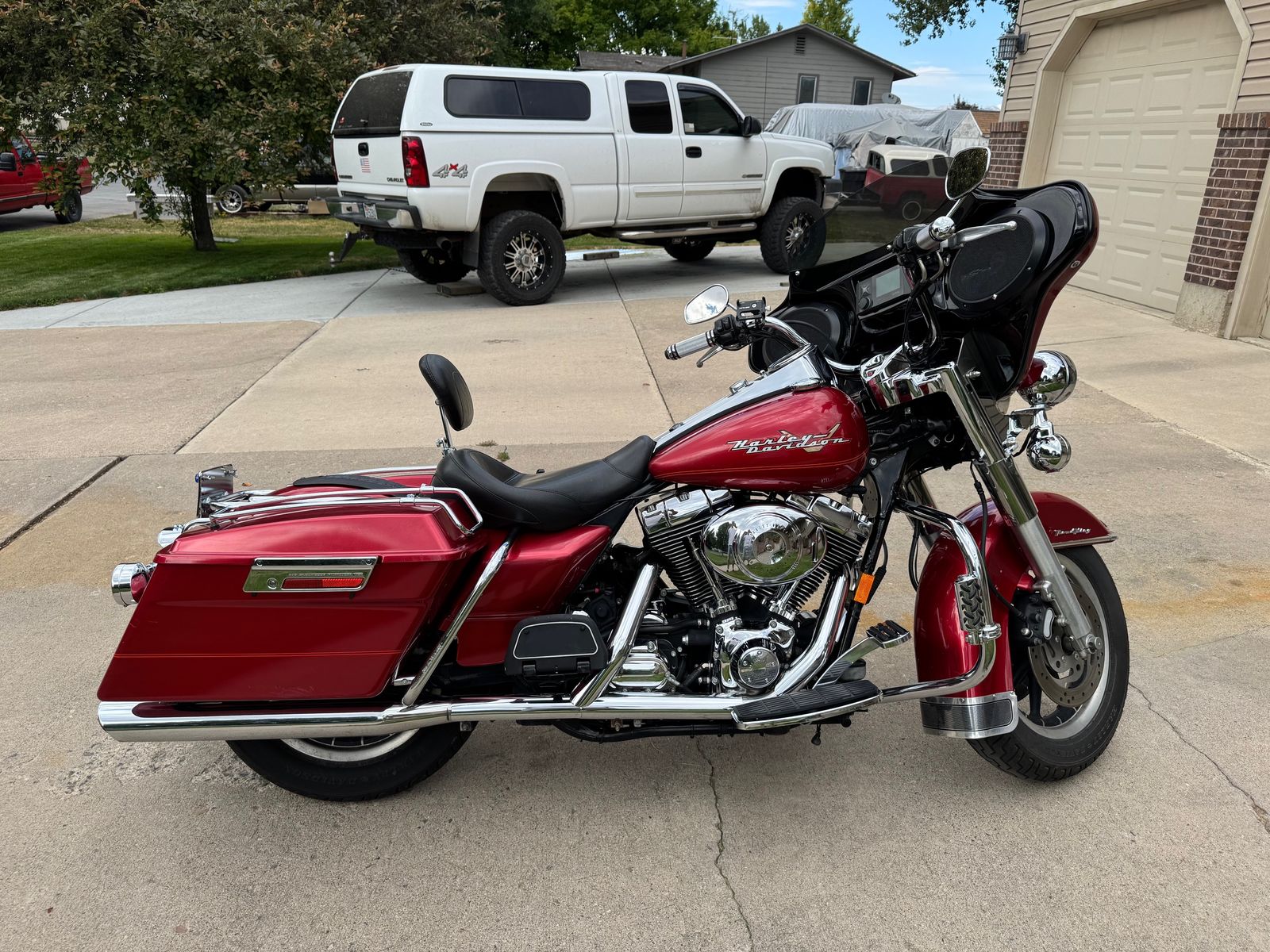 2004 Road King in very good condition. 67,722 miles. Fairing with great stereo system. Mustang seats. Recently serviced, tires in excellent condition. Wife loves this bike. Need to sale, bought newer bike.