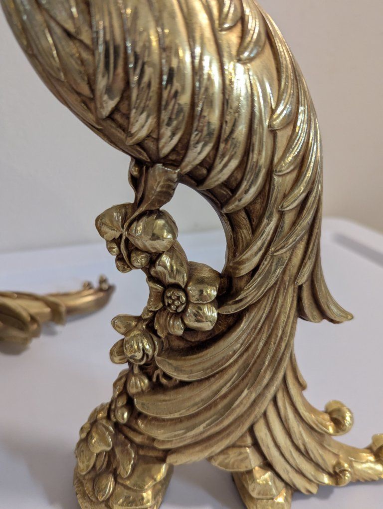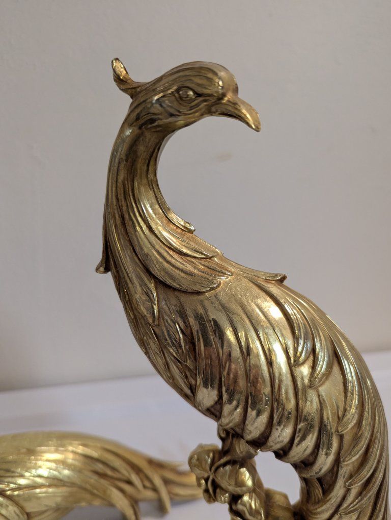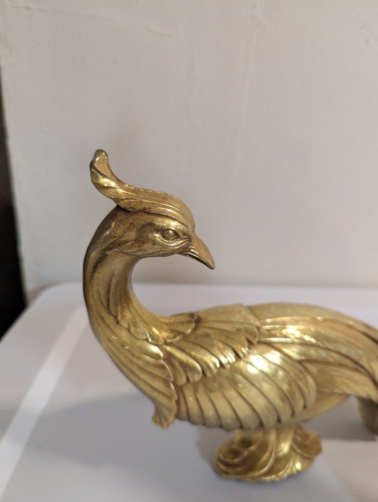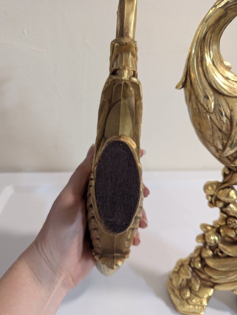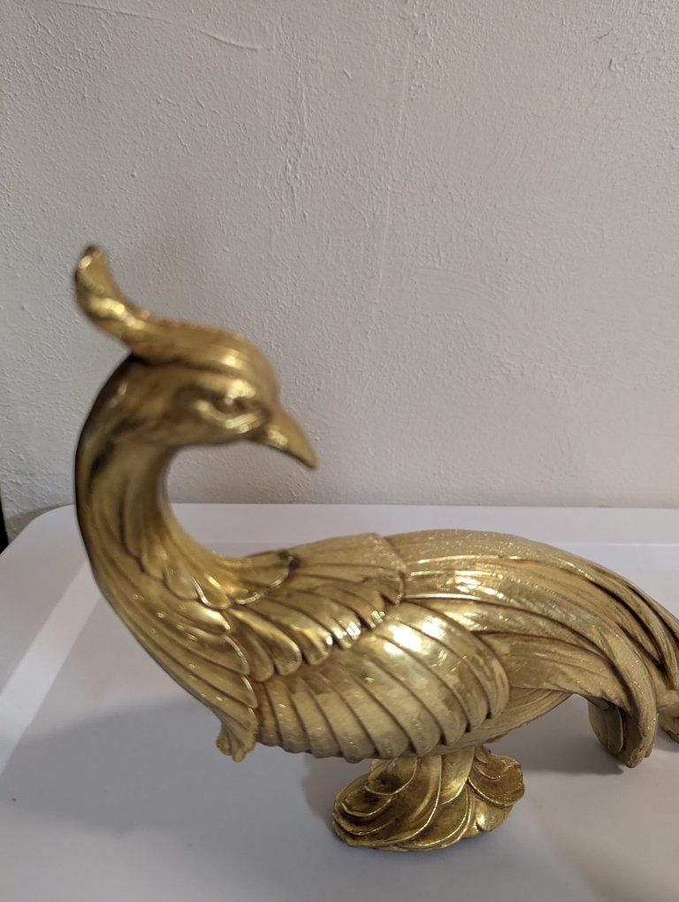 Venmoset of 2 vintage syroco gold pheasant and peacock sculptures MCM Hollywood regency No chips felted feet