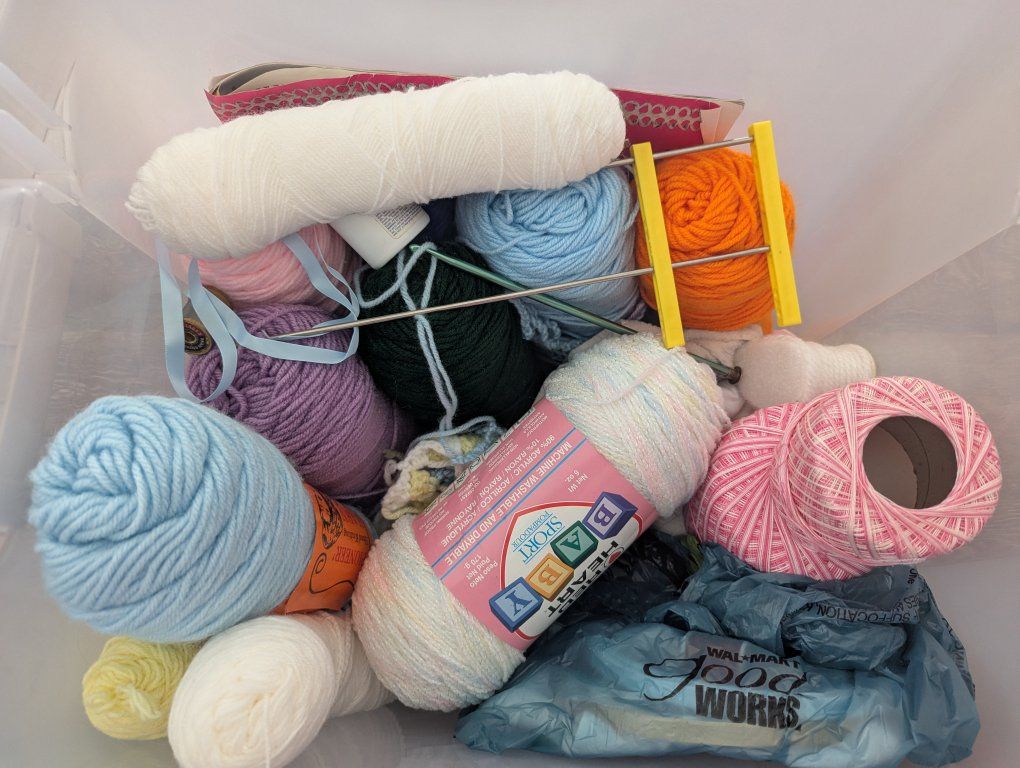 Venmobox full of yarn, crochet hooks for sale. They are random pieces given to me that I don't have time to use. If there's pieces you want let me know but would prefer to sell all together. whole lot for $40, cash or venmo only, Fcfs, pick up only in Sandy
