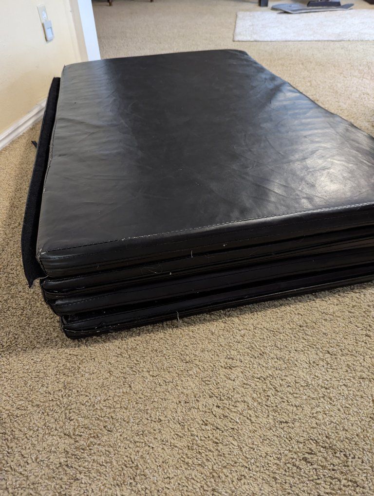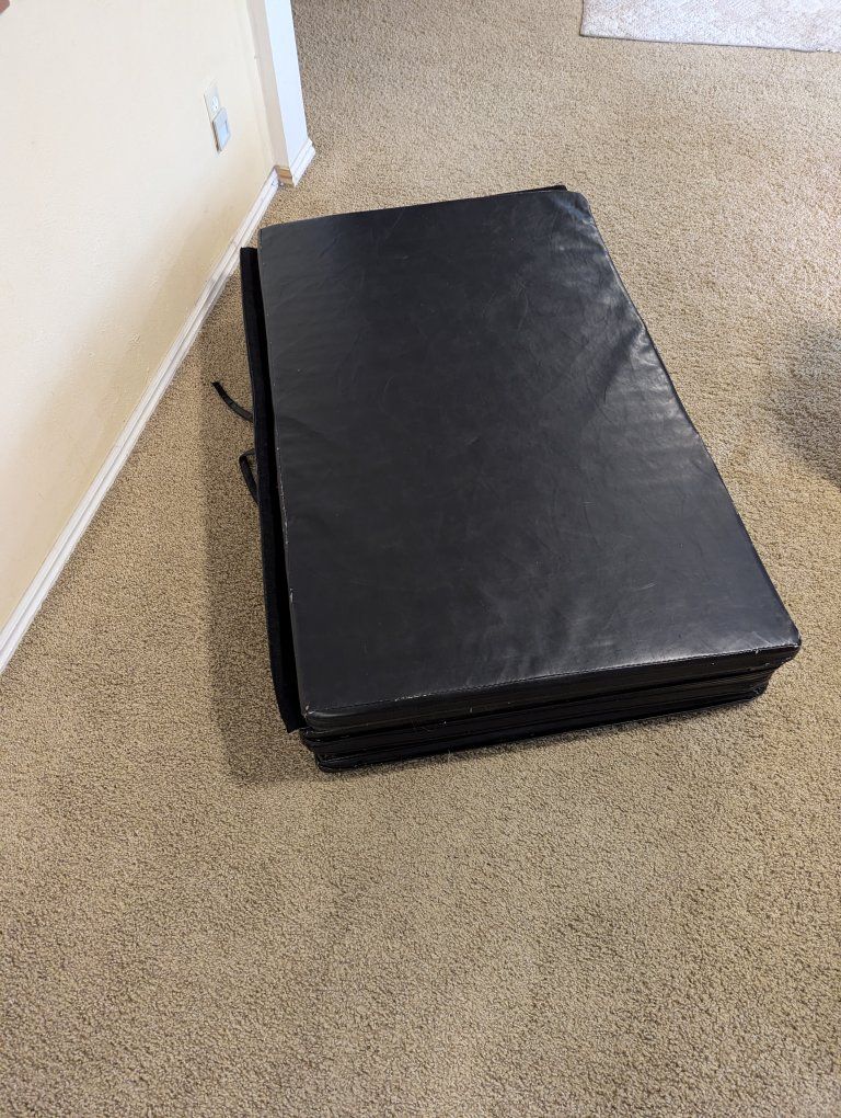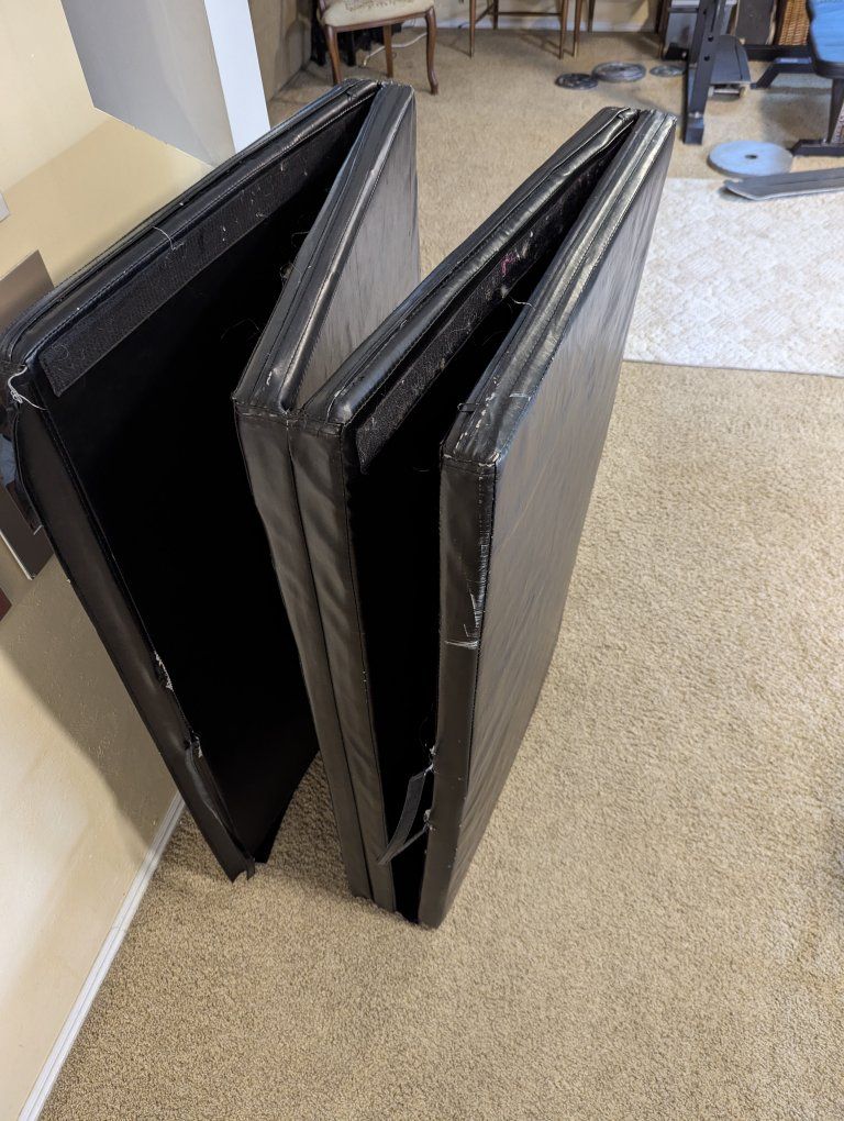 Venmothis tumbling mat has Velcro on the back for it to stay into place or attached to additional mats. has two handles. one of the handles is broken on one side 10 ft long. 4 ft wide 2 in thick pads Good quality