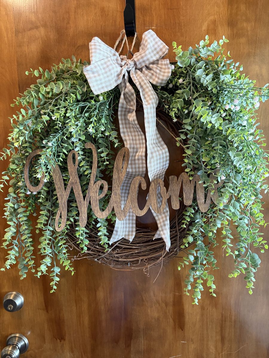 Scentsy wax warmers $10 for both. door wreath $20, black out curtains 41x53 curtains only $15. Decorative bed pillow shams Gray ones are 12x20. Cream colored ones are 26x26 $15.
