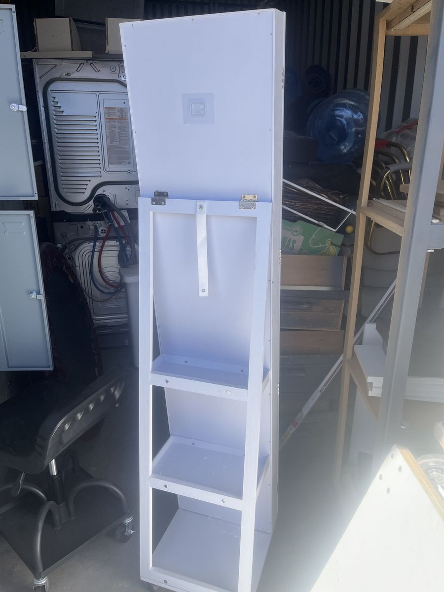 VenmoThis free standing mirror has a fold out compartment for makeup, or jewlery as well as small shelves in the back!