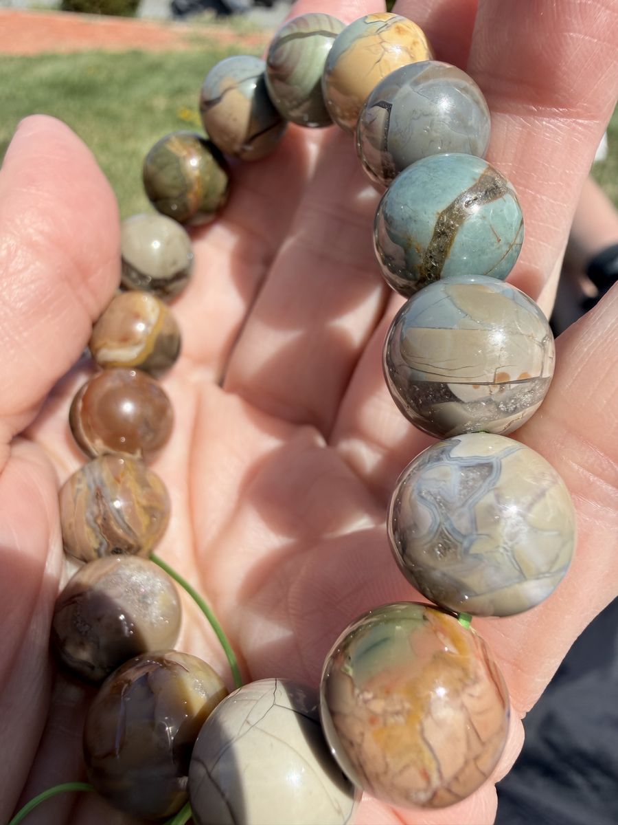 PayPalNatural Picasso Jasper bracelet with bold, earthy patterns that look like tiny landscapes in every bead. This is the kind of piece that doesn’t need explaining—it just quietly carries the whole outfit.