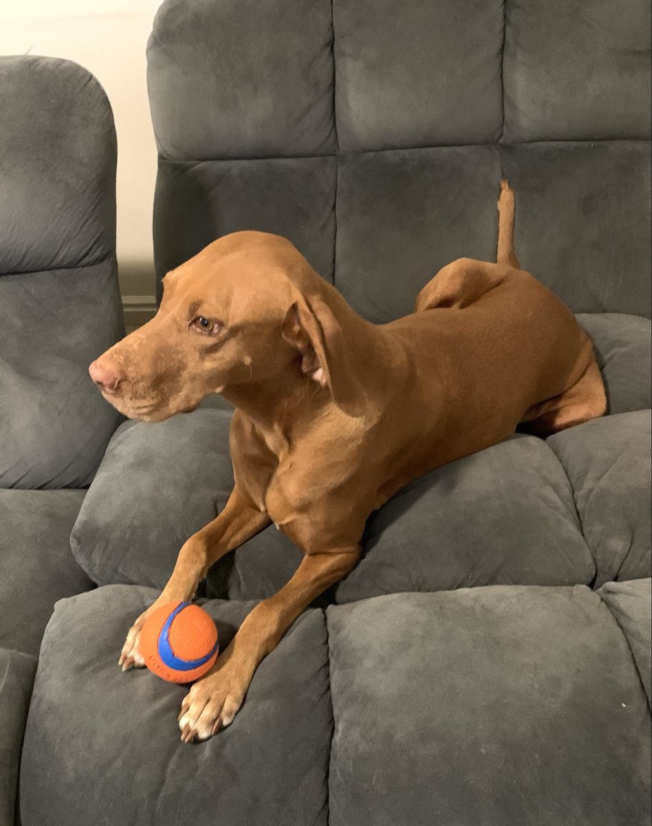 VenmoBorn 1/03/20. She’s a docked, declawed, intact Vizsla female who has had several litters. She’s up to date on all her shots. She is house broke, using a doggie door during the day, and can hold it through the night. A family dog that loves going on walks, running around on the farm, or being up in the mountains, and playing in the lake. Ball driven, she enjoys playing fetch, short or long distances, until you tell her “Cuddles, cuddles,” then she will sit next to you. Sleeps near us, because Vizslas prefer to be near their owners constantly. She does fine being in a kennel. She’s use to having other pets in the home. More protective than we need, so a home with older kids or no kids would probably be best.