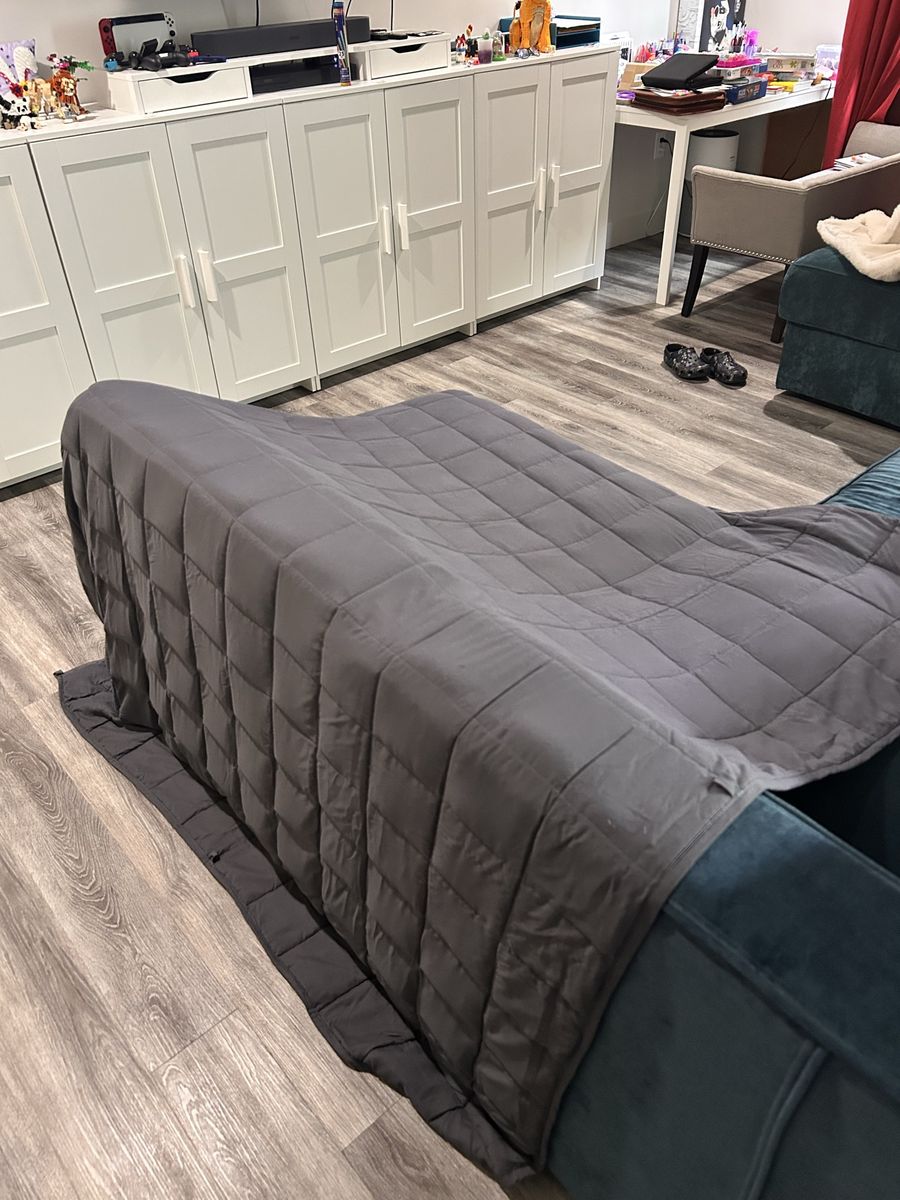 VenmoWeighted blanket to help with stress and anxiety. Lightly used. Gray.