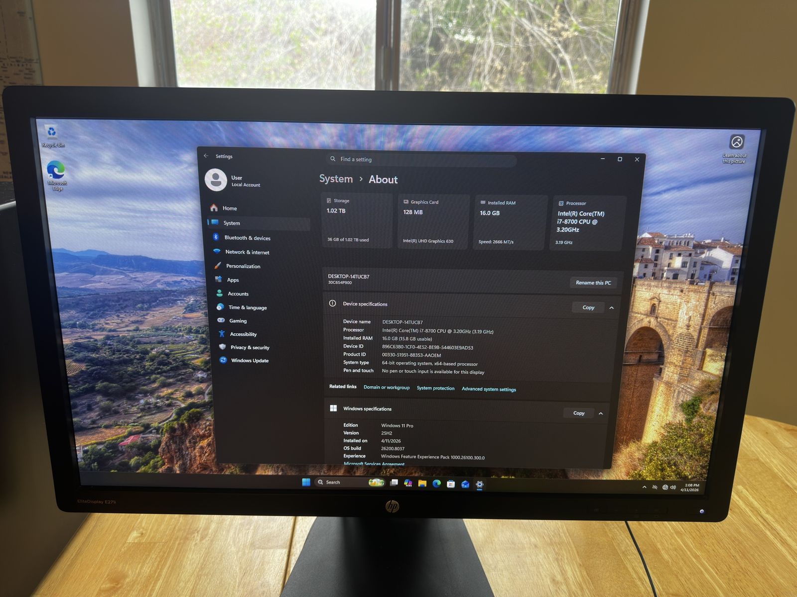 Specs: Model: Lenovo ThinkStation P330 OS: Windows 11 Pro CPU: i7-8700 RAM: 16GB DDR4 SSD: 120GB SATA Kingston HDD: 1TB Display model: HP EliteDisplay E271i Display specs: 27” 1080p 60Hz anti-glare
