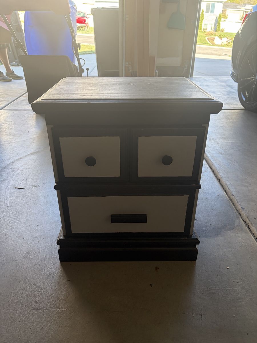 ApplePaySingle night stand. Son got a new one. Small glue spot on top. Can be sanded down and repainted. Solid wood. Asking $20 obo. North Ogden.