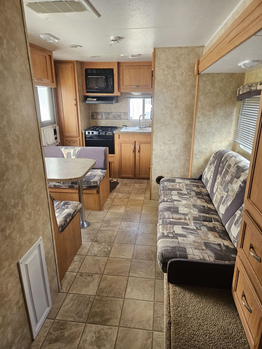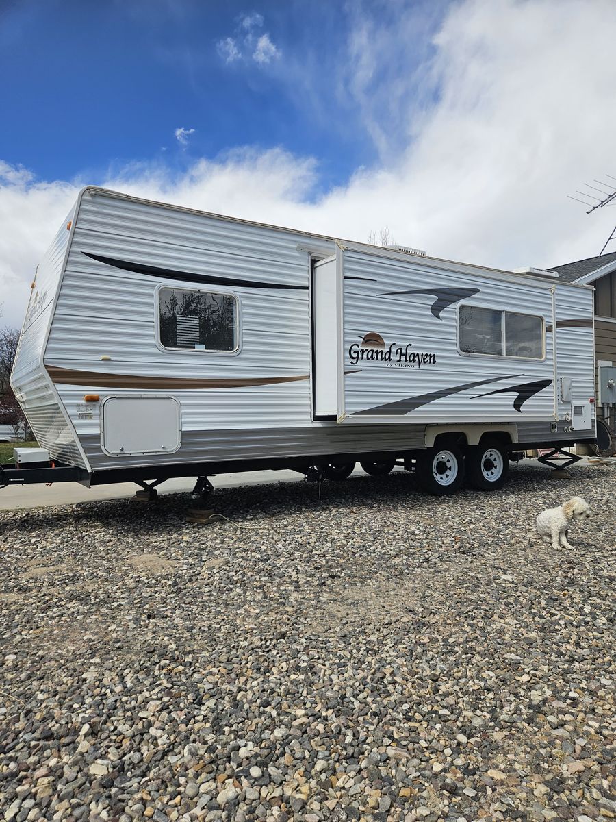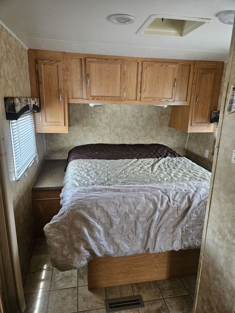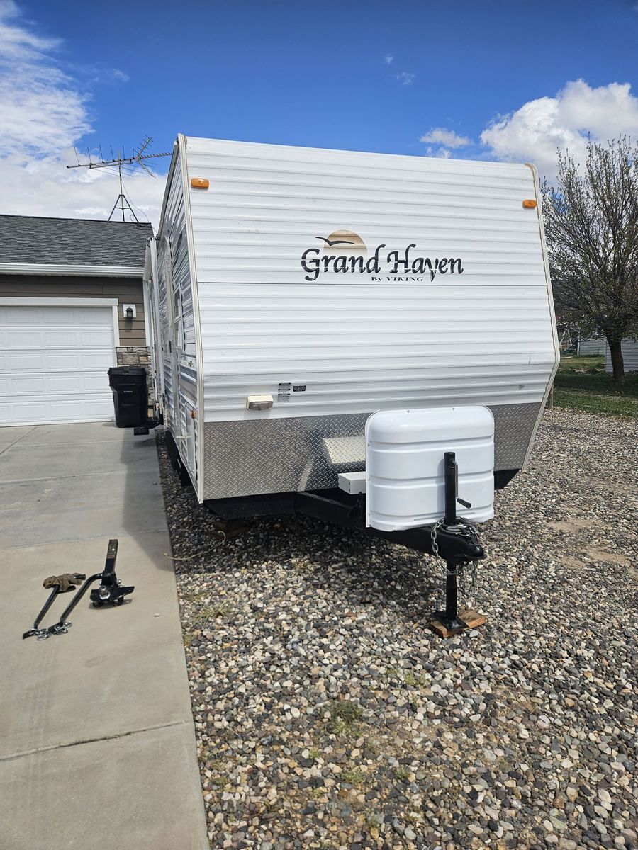 In great condition! Been stored inside its entire life. Everything works. Has one big slide out. Lots of storage with a big pass through compartment up front and storage under the bed. Has a custom mattress thats a little longer than your regular RV mattress. Comes a nice equalizer hitch. No leaks. Call or text 435-469-0629.