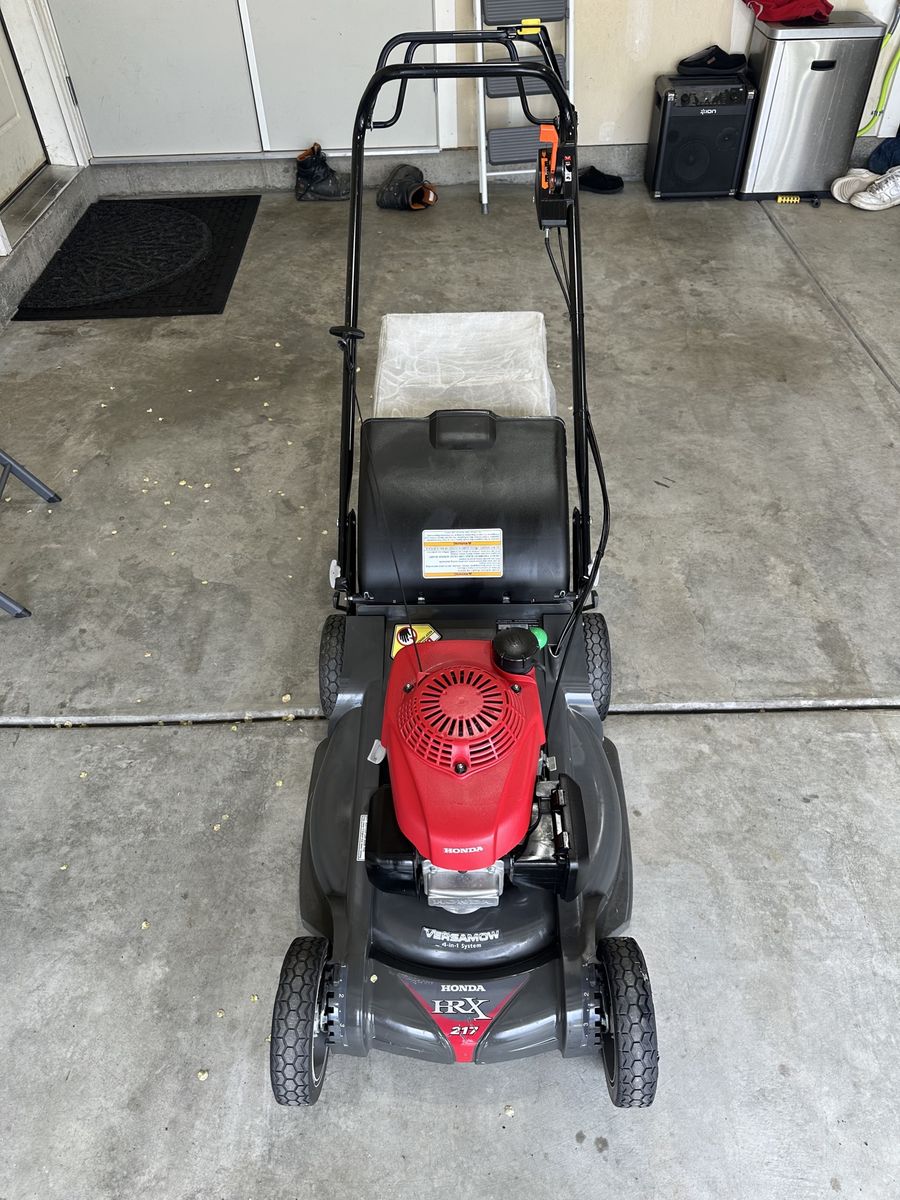 Honda hrx217 hyaa has just been fully serviced. New air filter,oil,spark plug. Gcv190 engine,bag or mulch, self propelled hydrostatic transmission, cruise control. $575