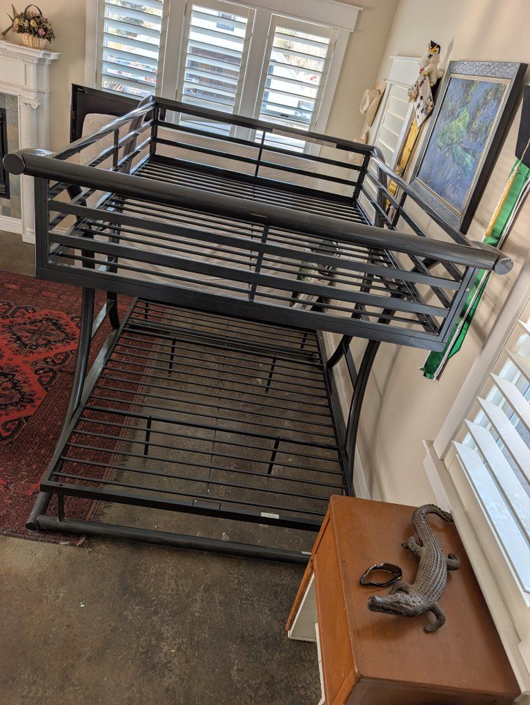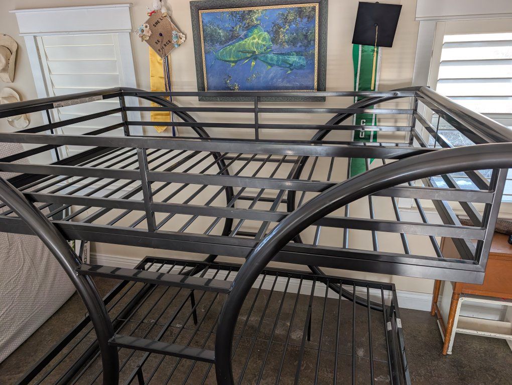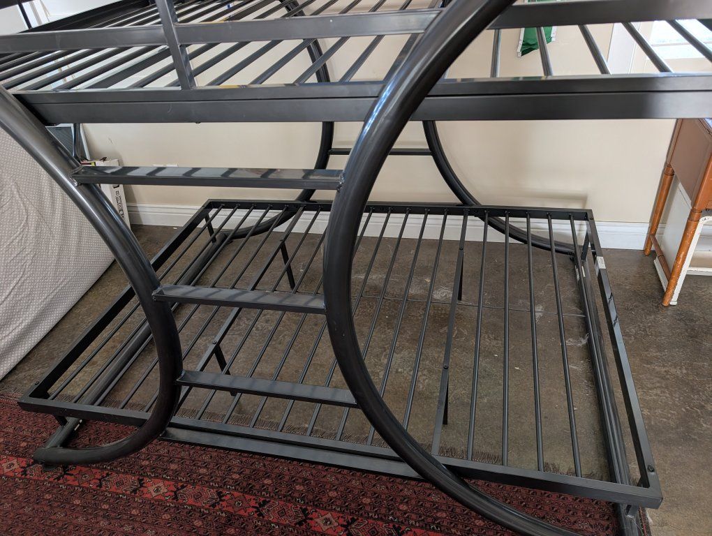 Venmosuper amazing bunk bed. loads of room in-between bunks. it comes with one mattress for top bunk. Love this frame because of how sturdy it is and because of the space in-between the beds. And it has a clean look to it. New it's $2000 without the mattresses. I am looking for just $1000 for this bunk including 1 mattress.