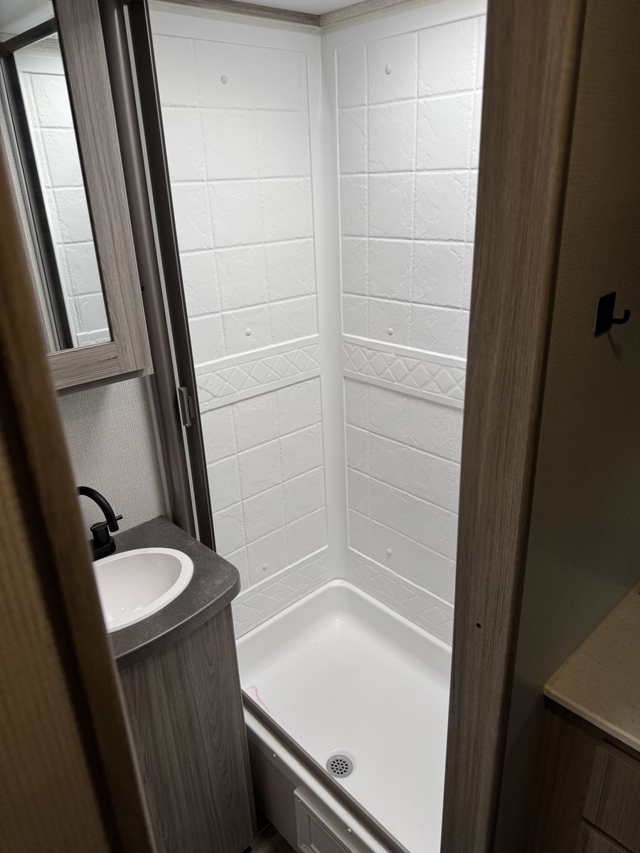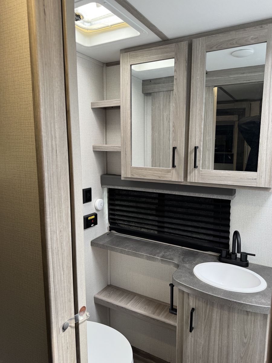 This camper is perfect for weekend trips or longer adventures, offering modern conveniences and off-grid capability with the solar setup.