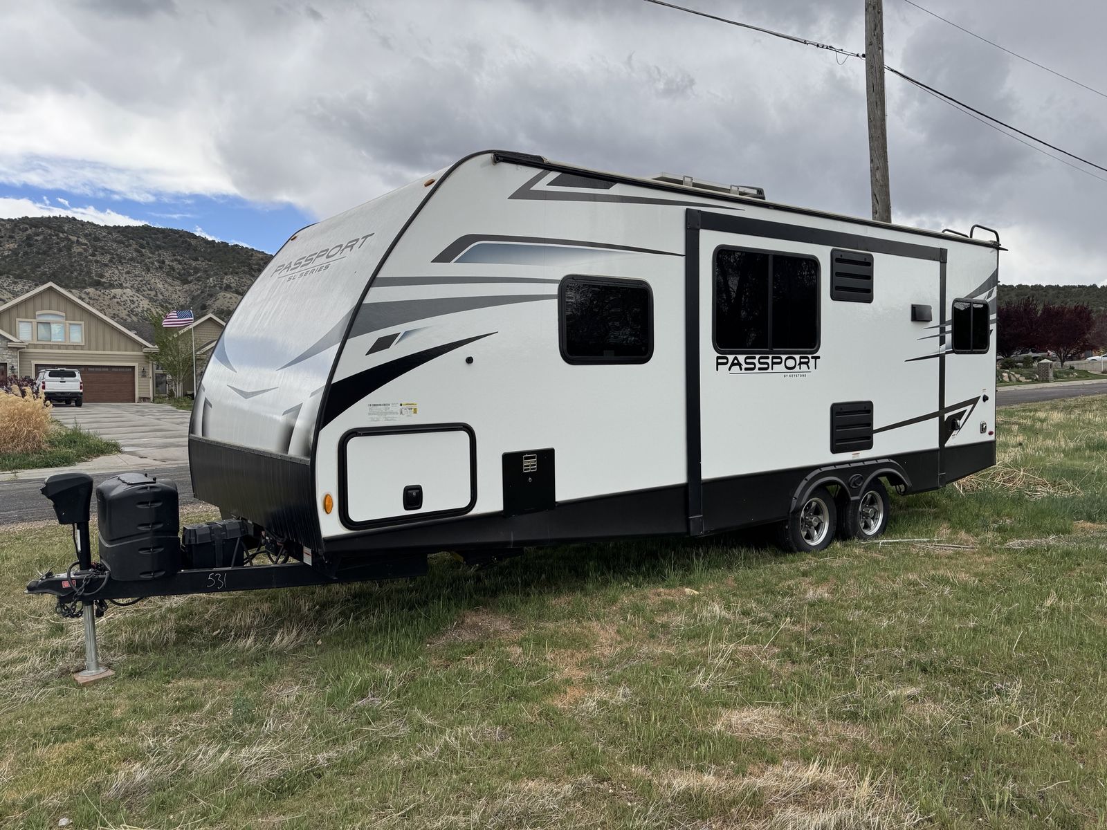For sale: 2022 Keystone Passport 229RK travel trailer in excellent, like-new condition. This camper has only been used a handful of times and has been stored inside a garage its entire life, keeping it clean and well-protected.
