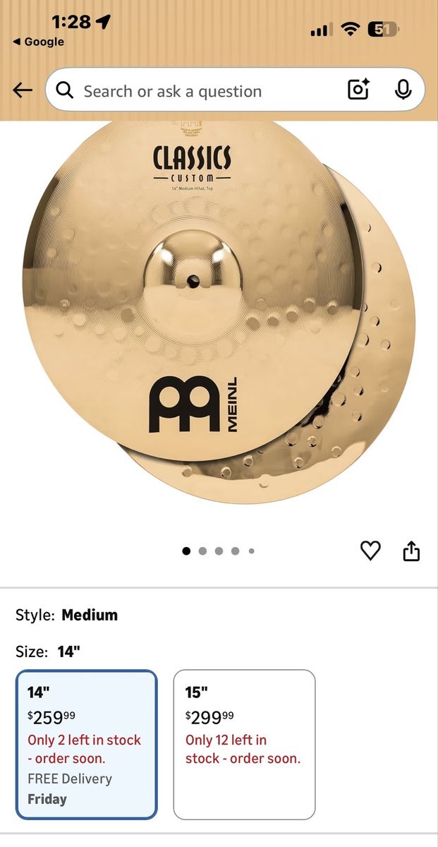 ApplePayMeinl 14" Classics Custom Medium Hi Hats. In excellent condition. No issues.