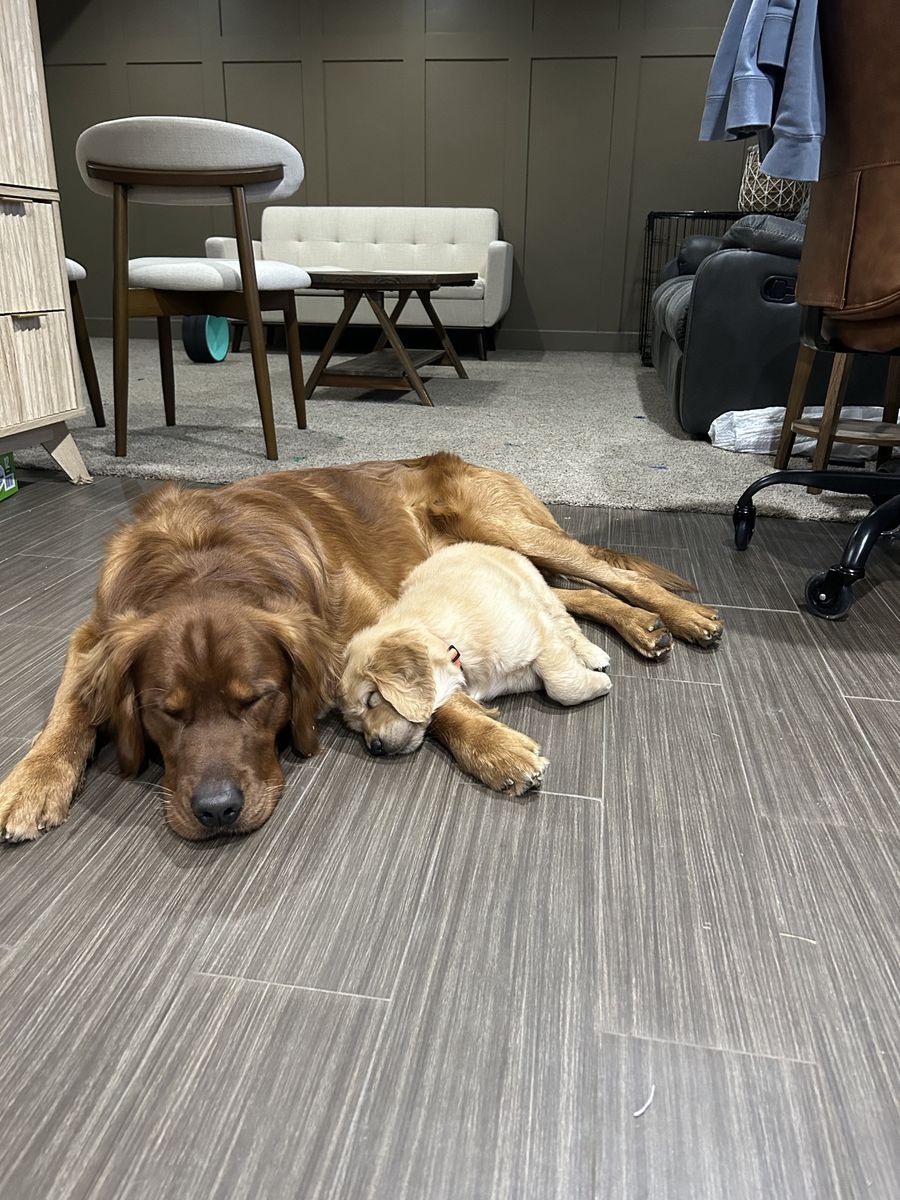 He is a proven stud and has successfully sired 2 healthy litters with no complications. His puppies have great personalities and classic Golden Retriever looks(4th picture is of him taking a nap with one of his puppies from his last litter.)