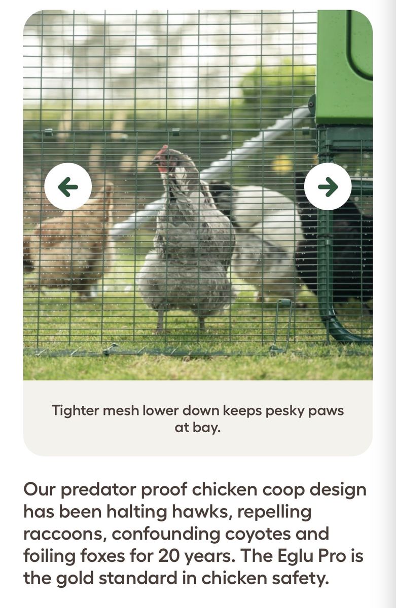 Selling a lightly used Eglu Pro extra-large chicken coop (purchased new 9/1/2024). This is a premium, low-maintenance coop that’s easy to clean, easy to move, and performs extremely well in cold weather.